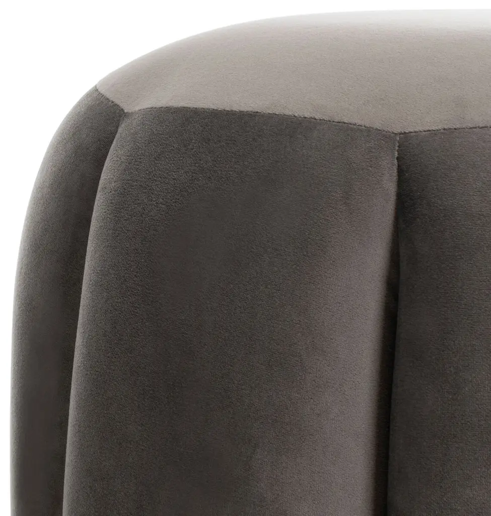 Set on a golden recessed plinth base, this retro-chic ottoman features a curvy, channel-tufted silhouette covered in luxe velvet and filled with foam.