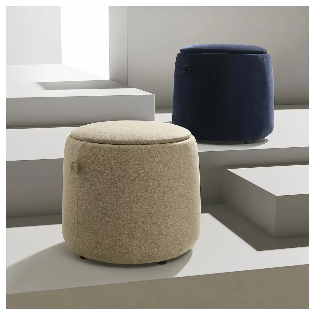 JÄRRESTAD Pouffe - with storage/Tonerud dark beige. This pouf with its soft silhouette offers nice seating comfort in a style that feels both timeless and modern. The conical shape is topped by an upholstered seat that hides a practical storage space.