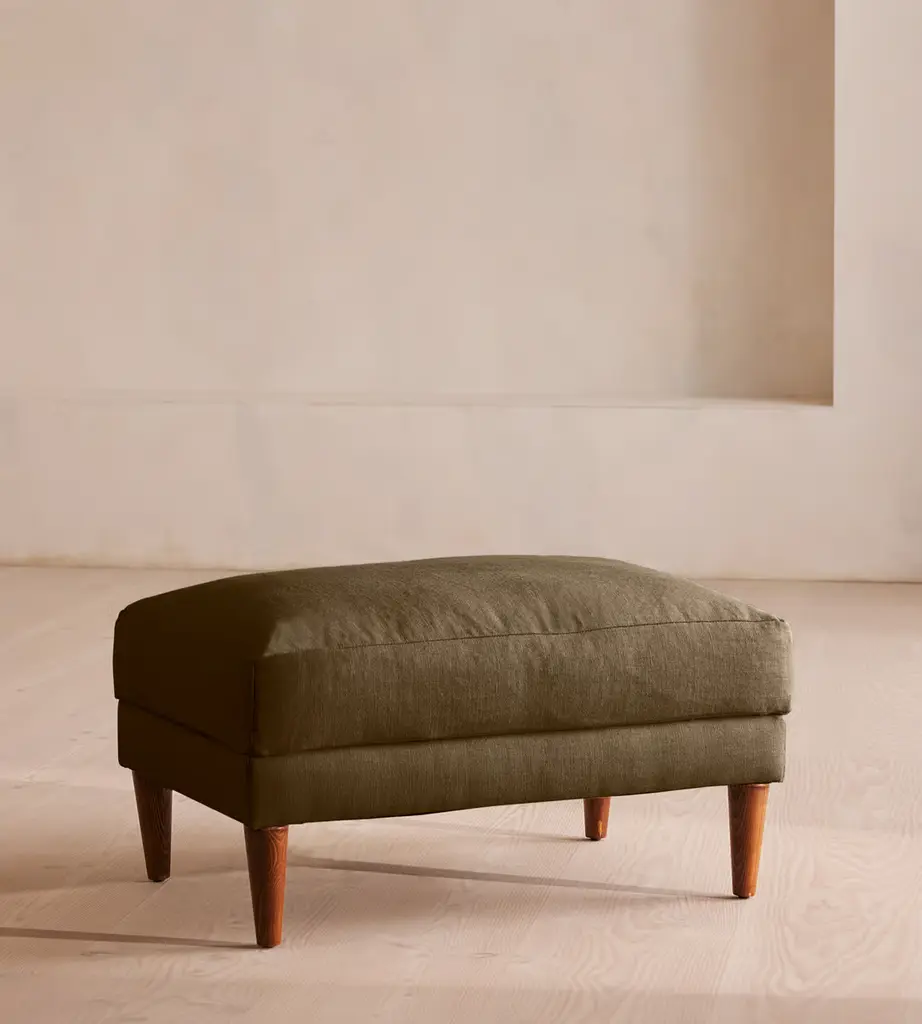 Defined by a low profile, boldly outlined architectural surrounds and soft interior cushions, the D'Urso Residential Ottoman epitomizes modern casual. With a seat depth of 40”, the Collection is scaled to complement expansive interiors, adapting to the home or office. Two leg options are available, polished chrome or a solid, wood turned leg in several finishes. One semi-attached cushion is constructed of highly resilient polyurethane foam and polyester fiber, wrapped in polyester fiber batting. A coordinating Sofa and Lounge are available and sold separately. More fabrics are available, please call our Sales Department at (800)462-7638.