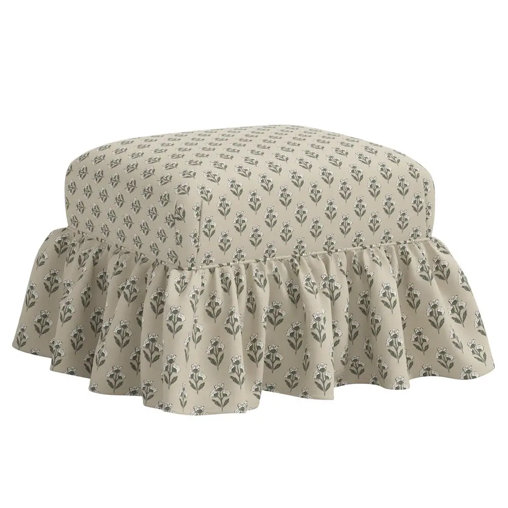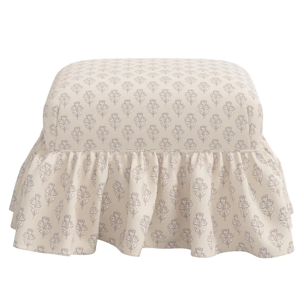 Introducing the June Ottoman, a truly unique piece with its distinctive ruffled bottom. Combining vintage charm with a modern twist, this ottoman exudes a cozy and nostalgic feel. Whether paired with your favorite chair, used as a small side table, or placed at the foot of your bed, it adds a special touch to any space. Fully upholstered in one fabric for a cohesive appearance, this understated yet eye-catching piece will effortlessly complement any decor. Exclusively available from the Stoffer Home crafted by Cloth & Company collection.