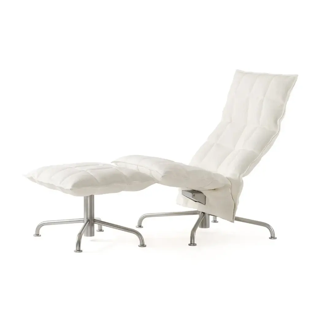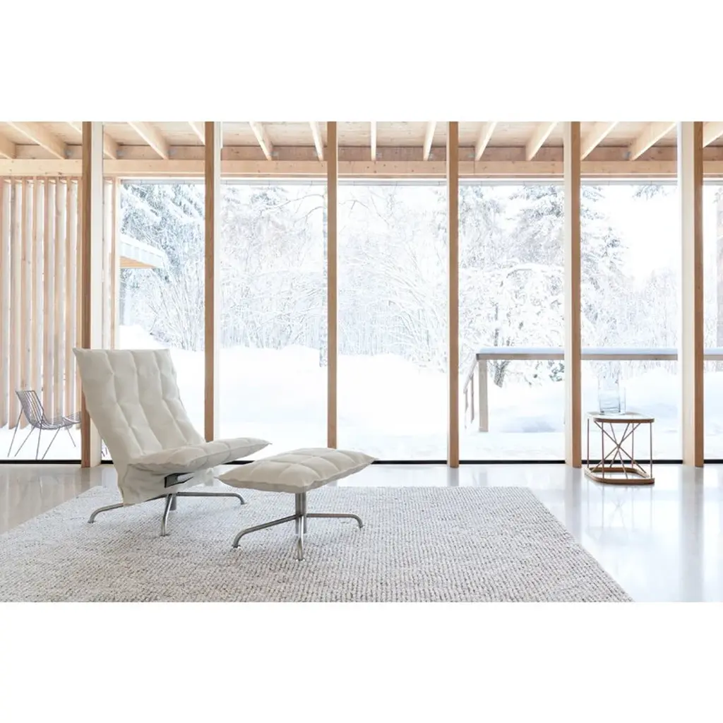 The K ottoman by the Finnish company Woodnotes has a relaxed, refined appearance that works equally well in private and public environments. The K ottoman features a robust steel tube frame and removable upholstery made of a blend of paper yarn and cotton with soil-repellent treatment. The visible steel parts are coated with a matt chrome finish. The K ottoman is the perfect companion for the K chair from the same series, and it can also be used independently in a variety of contexts. Designed by Harri Koskinen for Woodnotes, the K chair is a modern classic of Finnish design. It was granted the Interior Innovation Award at Cologne’s International Furniture Fair in 2004.