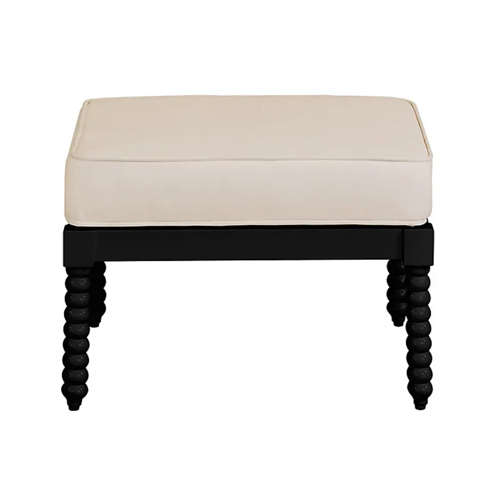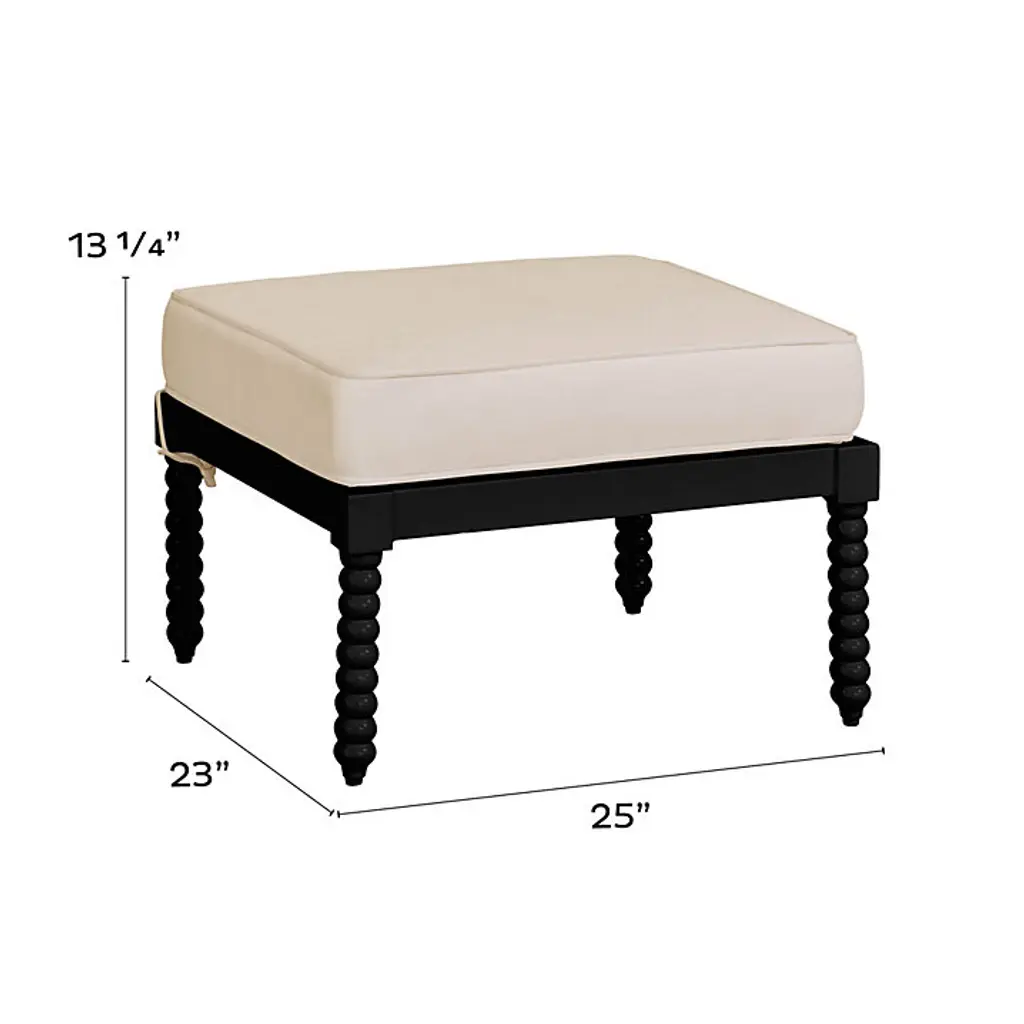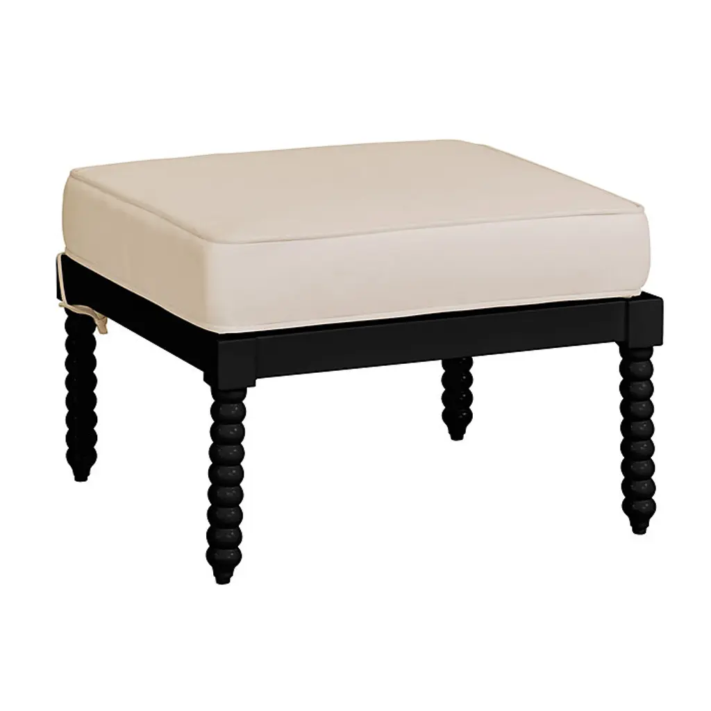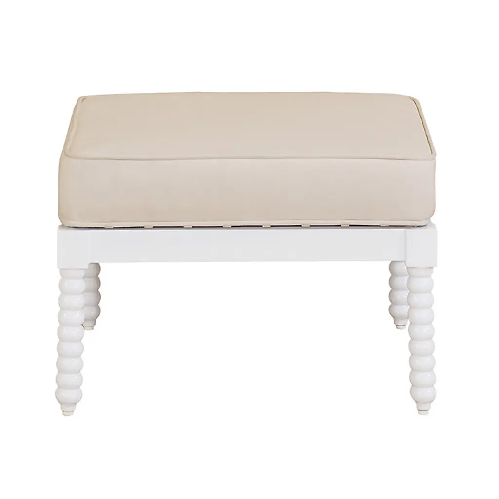 Spool furniture has been popular since the mid 17th century and remains a designer favorite for its Americana cottage feel. With our Kadie Ottoman, you can enjoy the charming look indoors or out. The weatherproof frame is beautifully crafted of powder-coated aluminum with crisp spool texture lining each leg. Slatted seat deck allows water and cooling air to flow through. Included seat cushion is covered in ultra-durable, cleanable Canvas White Sunbrella® Performance Fabric. Pair this stylish outdoor ottoman with our Kadie Chair for the ultimate in kick-back outdoor comfort. Kadie Ottoman features: Ballard Designs Performance Fabrics by Sunbrella features: