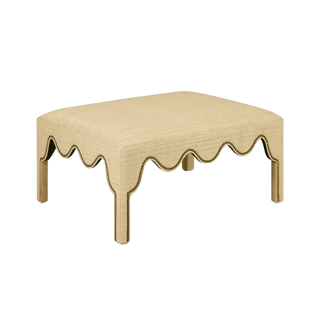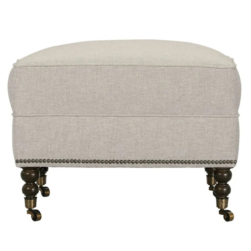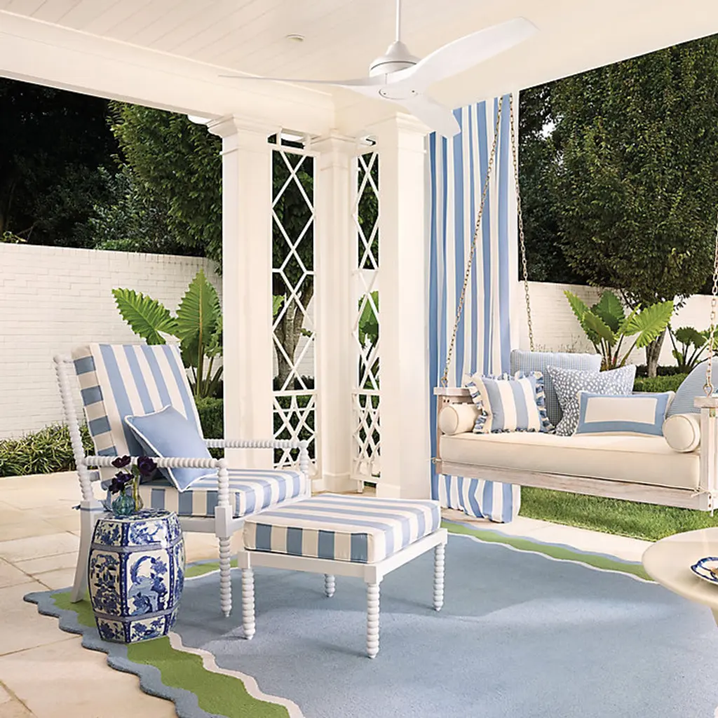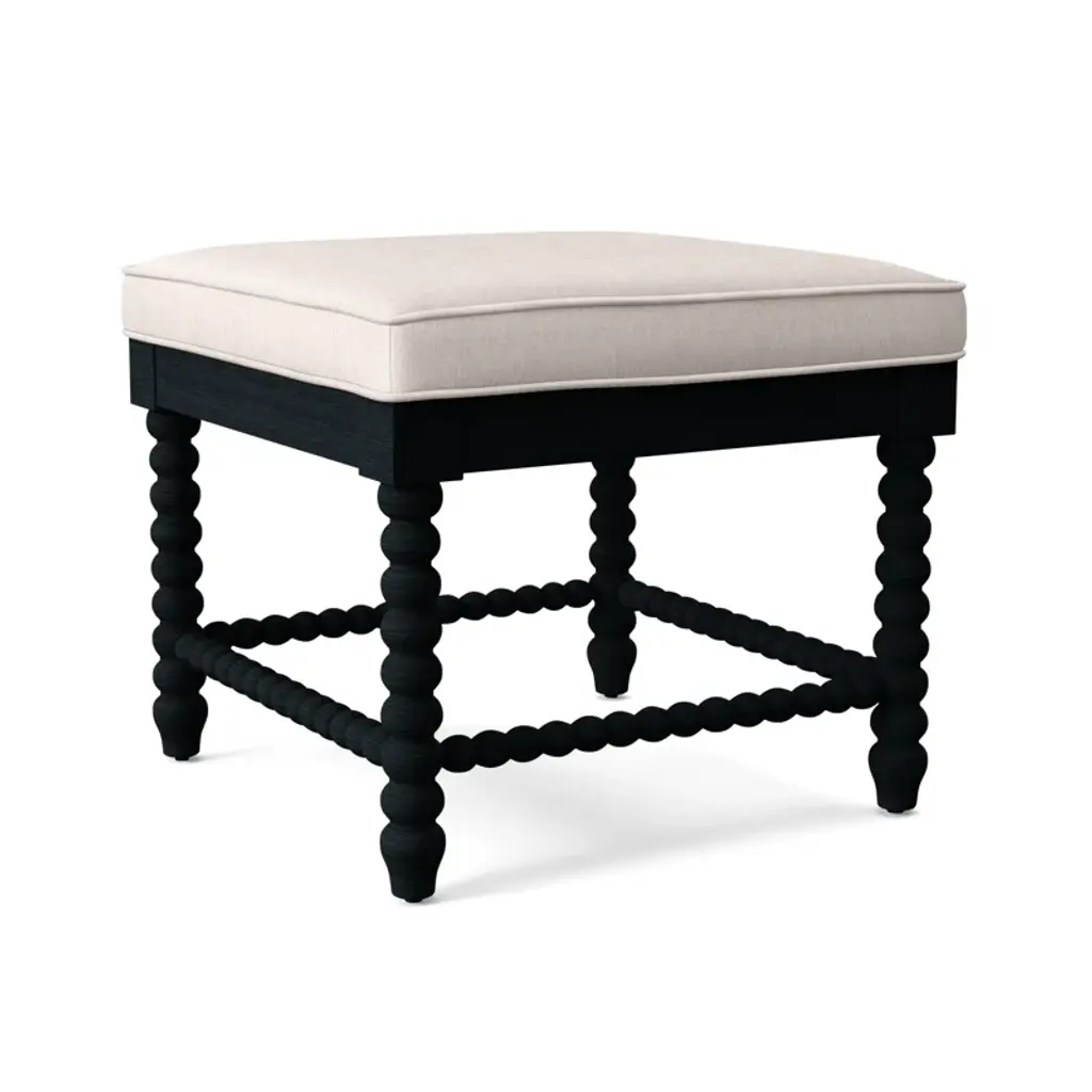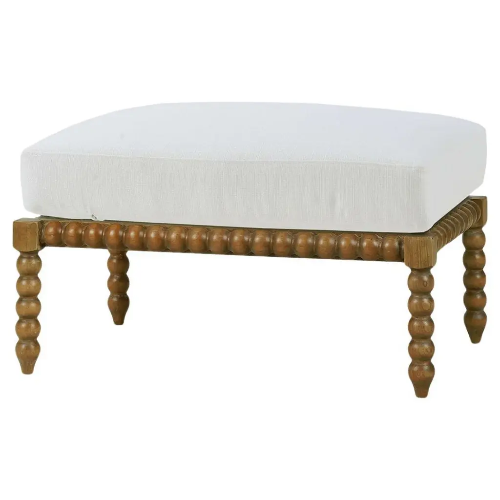 Spool furniture has been popular since the mid 17th century and remains a designer favorite for its Americana cottage feel. With our Kadie Ottoman, you can enjoy the charming look indoors or out. The weatherproof frame is beautifully crafted of powder-coated aluminum with crisp spool texture lining each leg. Slatted seat deck allows water and cooling air to flow through. Included seat cushion is covered in ultra-durable, cleanable Canvas White Sunbrella® Performance Fabric. Pair this stylish outdoor ottoman with our Kadie Chair for the ultimate in kick-back outdoor comfort. Kadie Ottoman features: Ballard Designs Performance Fabrics by Sunbrella features: