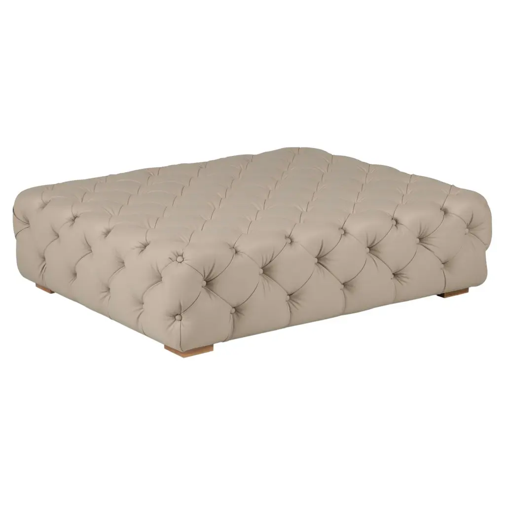 Bringing functionality with a high dose of style to your living room, our Katrina cocktail ottoman provides you with a convenient surface to prop up your feet or a place to corral your remotes and coasters in a decorative tray. Upholstered in supple, 100% top-grain leather, this cocktail ottoman features tapered feet and topstitching that adds an elegant look.