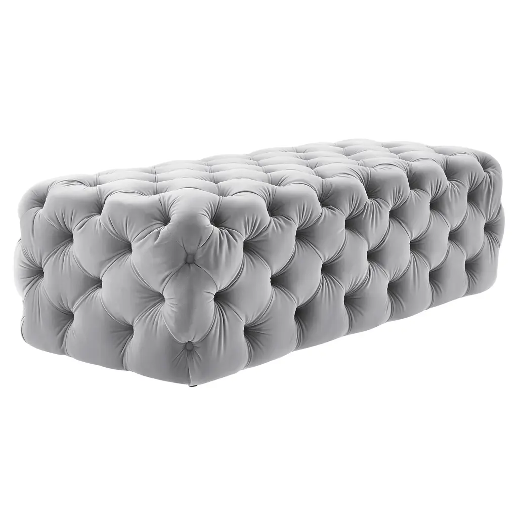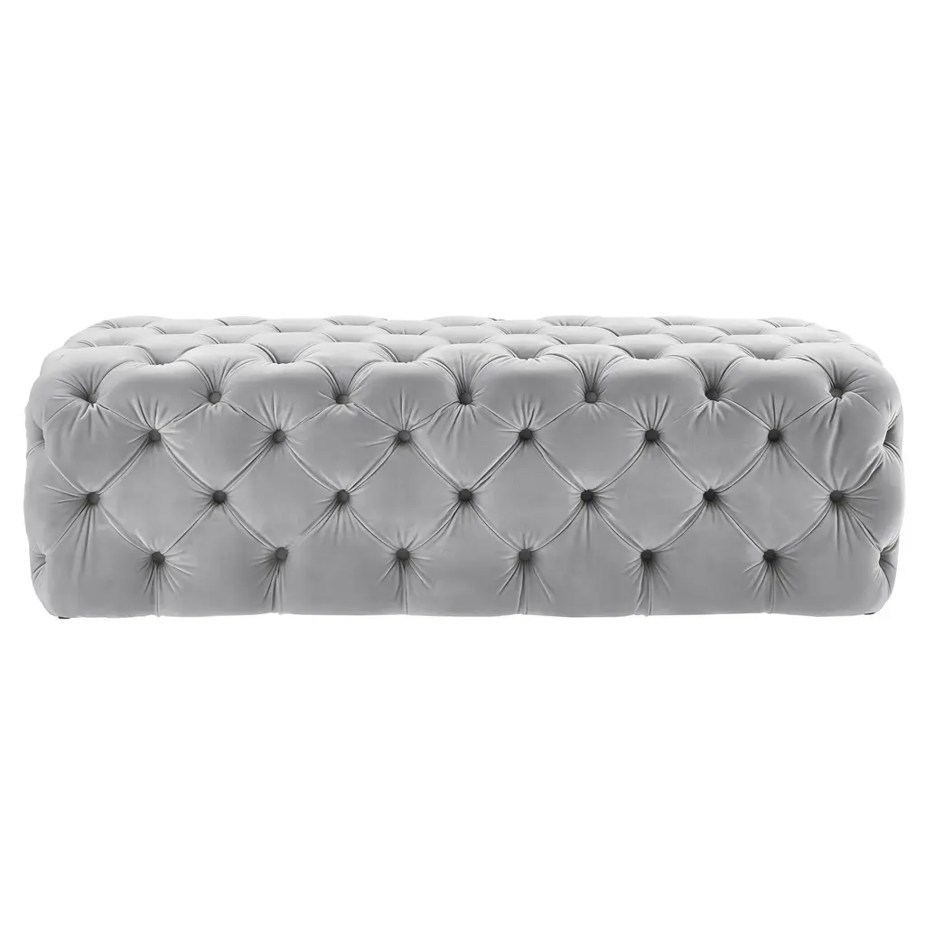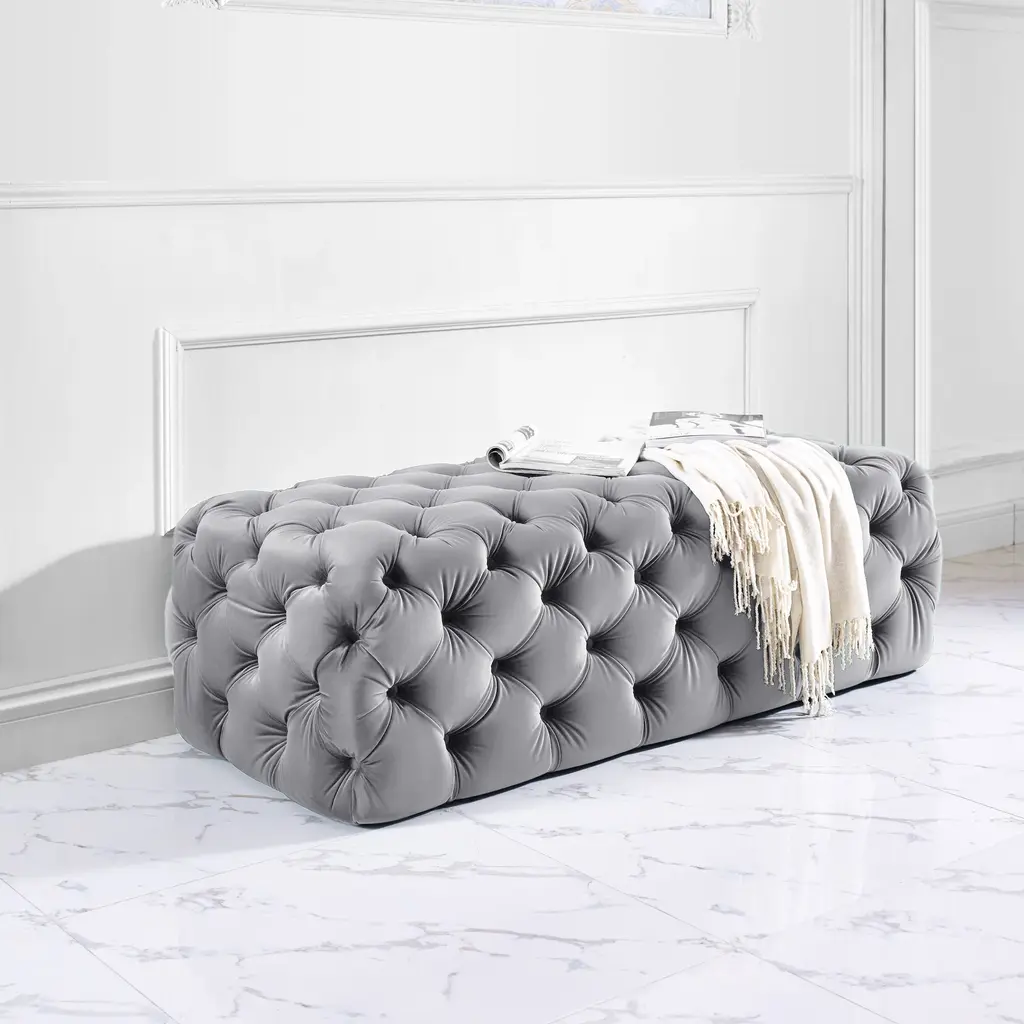 The supremely soft velvet and endlessly deep tufting of our Kaylee jumbo ottoman will take center stage in any room. The deep button tufts and solid wood frame present style and comfort that everyone will enjoy. Available in a wide variety of velvet color options.