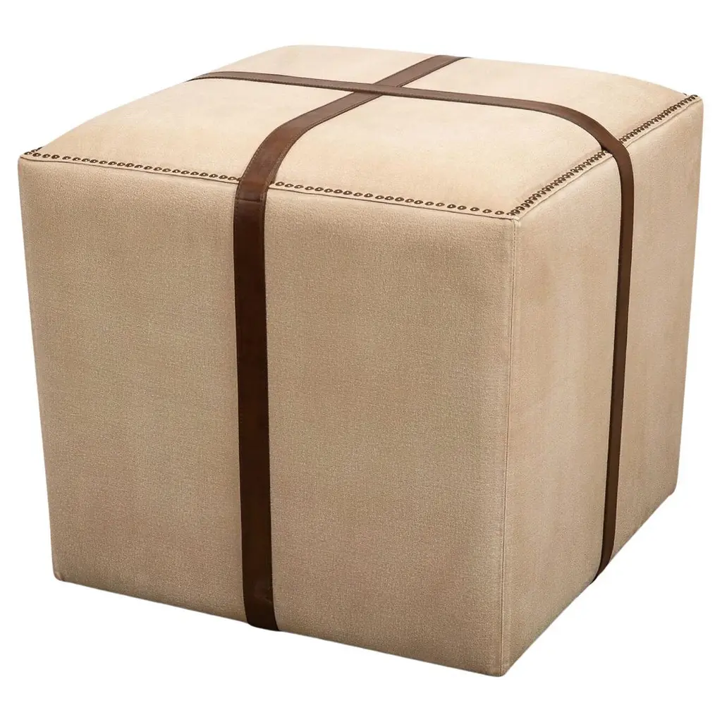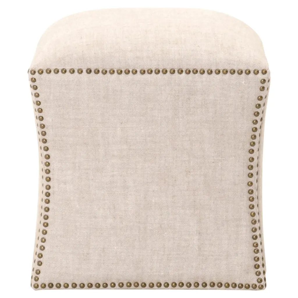 Kelly Modern Classic Cream Upholstered Gold Nailhead Trim Square Ottoman