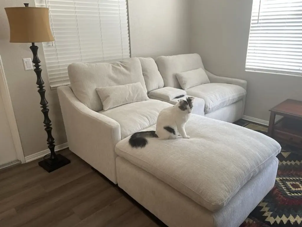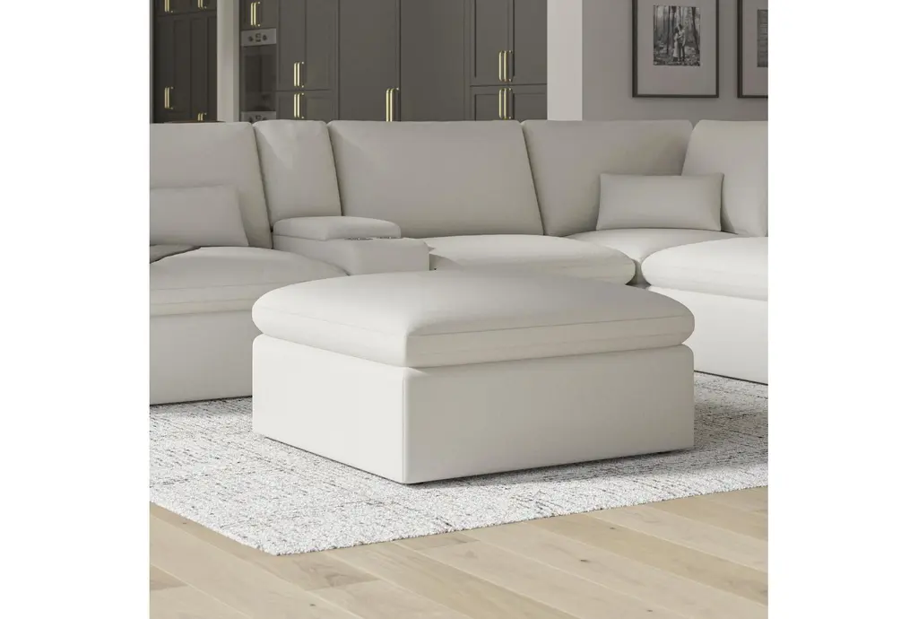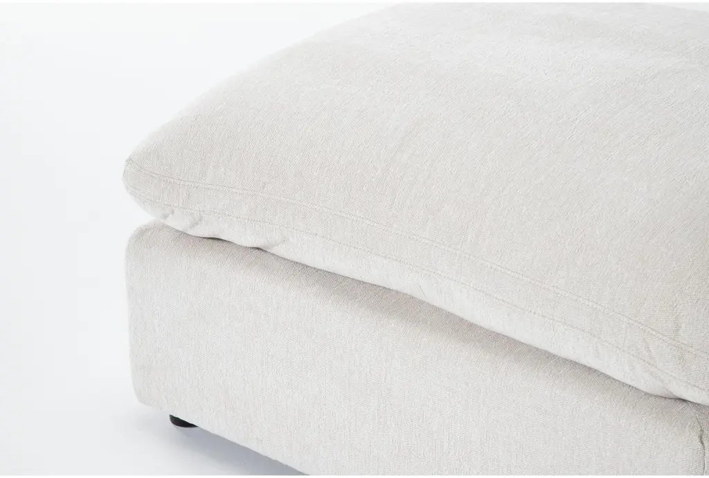 Introducing the Kennedy Cream 40" Square Cocktail Ottoman, a perfect addition to any modern living room. This oversized ottoman, upholstered in soft linen-colored polyester fabric, offers a cloud-like comfort level that invites relaxation. Its modular design and square shape make it a versatile piece suitable for various room layouts.