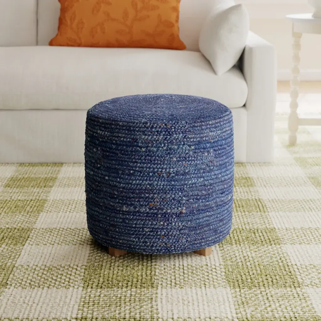 Offer your space the ideal pop of bohemian flair, with this inviting, stylish ottoman. Its sturdy wood base is covered with woven jute that will fit in your bohemian, farmhouse, or even coastal decor. Short wooden legs add a touch of height to the ottoman. Made in India. Manufacturers 30-Day Limited Warranty.