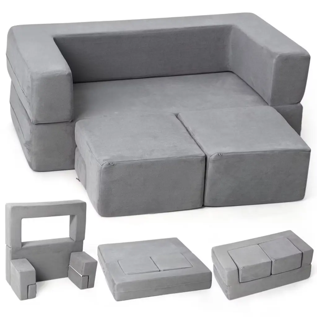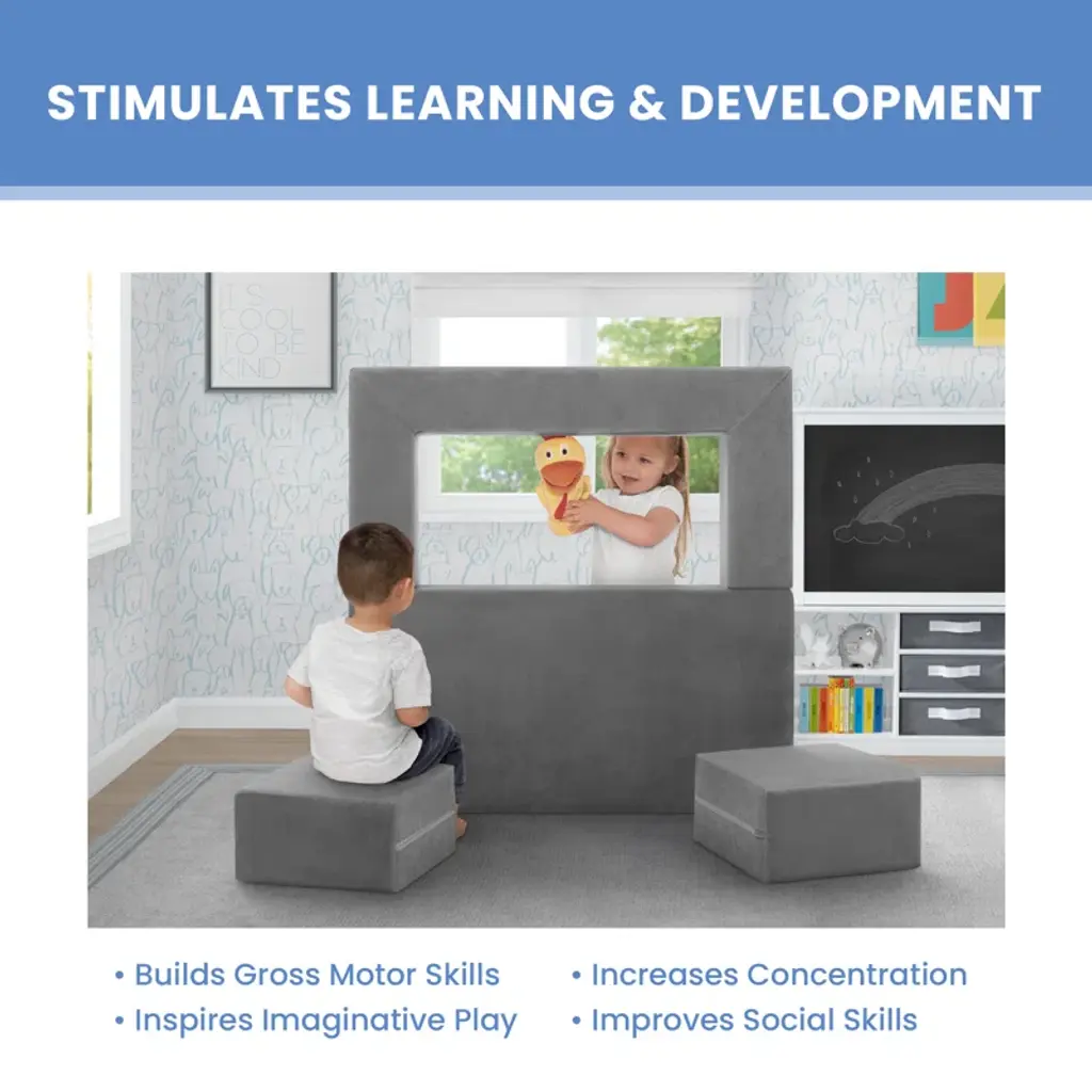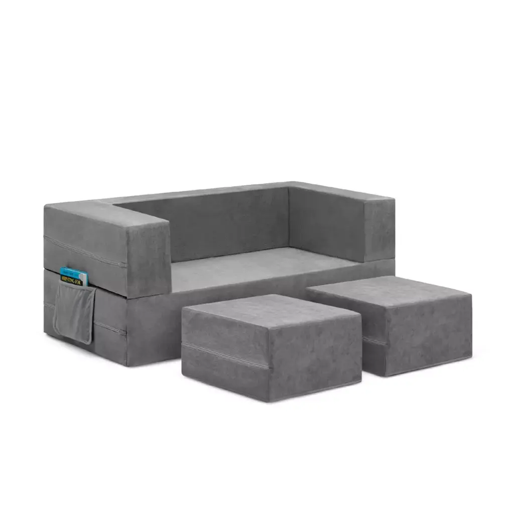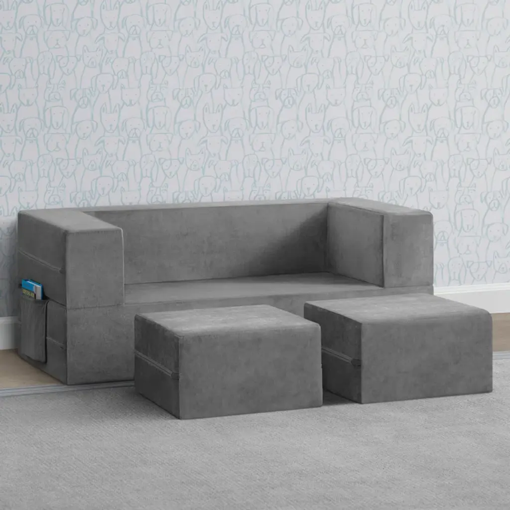 It's a sofa! It's a play mat! It's a fort! The Convertible Foam Sofa and Play Set by Delta Children can be whatever your child imagines. The sofas convertible design with two included ottomans allows your little one to use it in so many ways. Use it as a sofa to watch TV, flip it open to use as a play mat, or move the parts to configure a puppet theater, castle, ball pit, or obstacle course. This modular play couch made up of three foam pieces will give kids hours of entertainment and encourage imaginative play while helping improve gross motor skills. The perfect addition to your child's bedroom or playroom, the sofa's sturdy foam base and plush slipcover with a storage pocket is a super-safe play structure. Slipcovers are removable and machine washable. Recommended for ages 18 months and up. Delta Children was founded around the idea of making safe, high-quality children's furniture affordable for all families. They know there's nothing more important than safety when it comes to your child's space. That's why all Delta Children products are built with long-lasting materials to ensure they stand up to years of jumping and playing. Plus, they are rigorously tested to meet or exceed all industry safety standards.