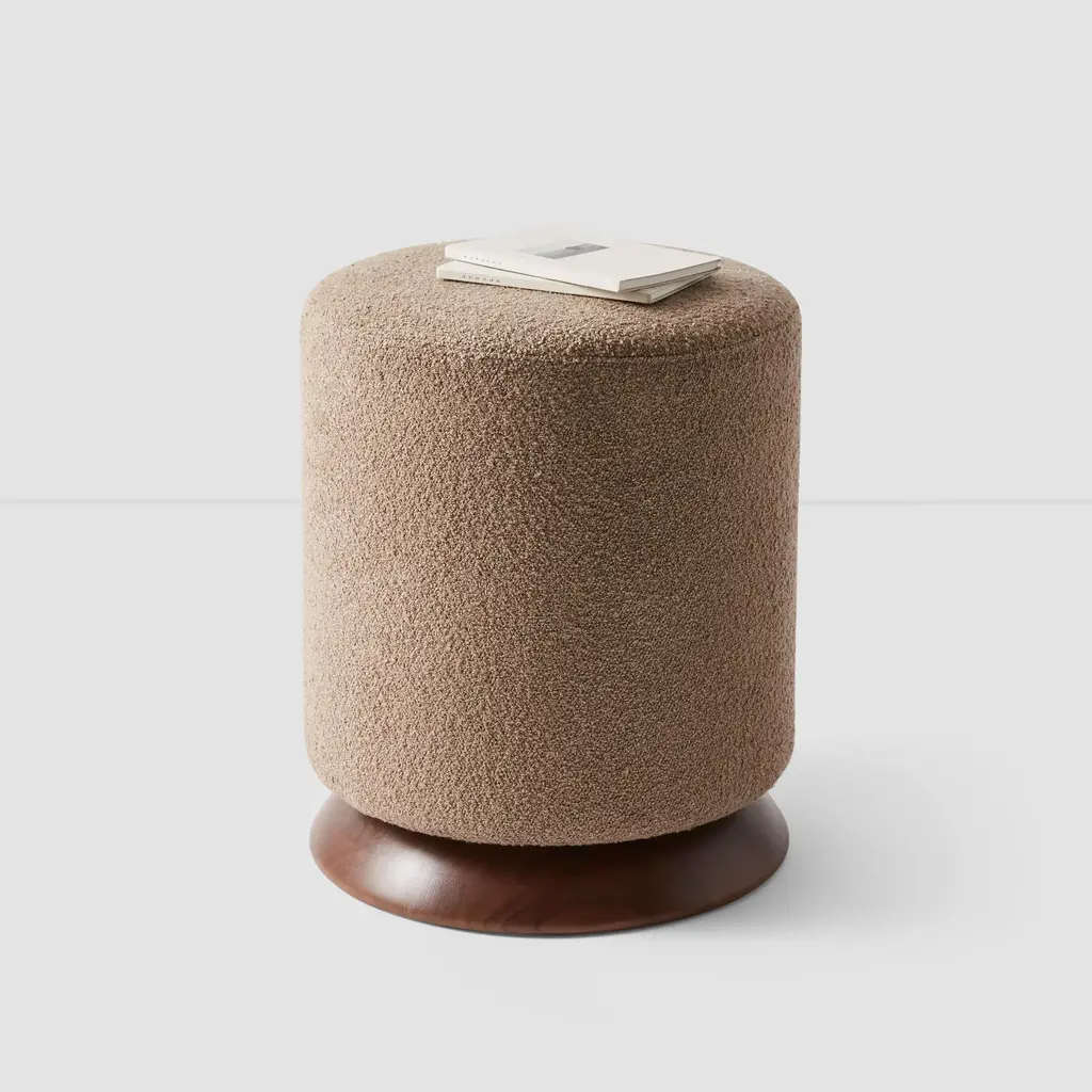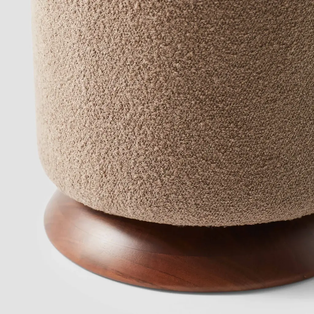 Blending boucle textures with a rounded pedestal, this acacia ottoman is both durable and stylish. Rounded curves. Soft boucle textures. This handsome ottoman has range. From a cozy bit of extra seating to a landing pad for your new favorite book, it’s ready for anything. Framed in acacia with a durable performance fabric, each piece is the perfect place to put your feet up. Handcrafted from solid acacia, each piece is built by a group of artisans in a workshop in Ghaziabad, India. All sustainably made in a fair trade environment.