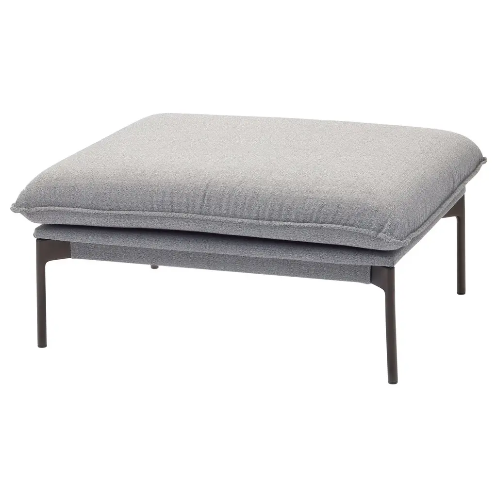 KIVIK Ottoman with storage - Kelinge gray-turquoise. Rest your feet on the footstool or use it as an extra seat or a comfortable extension of your sofa. The cover is easy to keep clean since it can be machine washed and is easy to take off and put on again.
