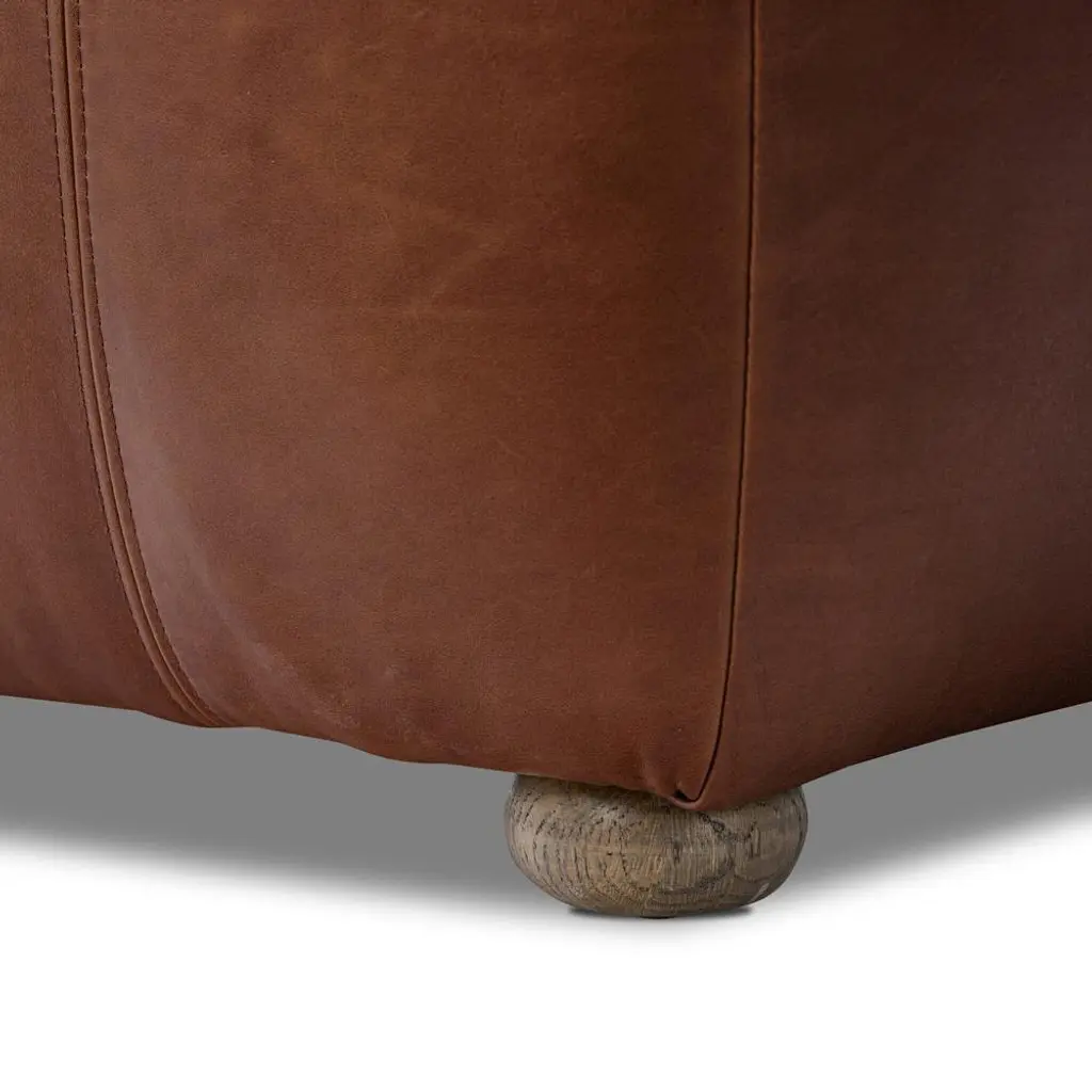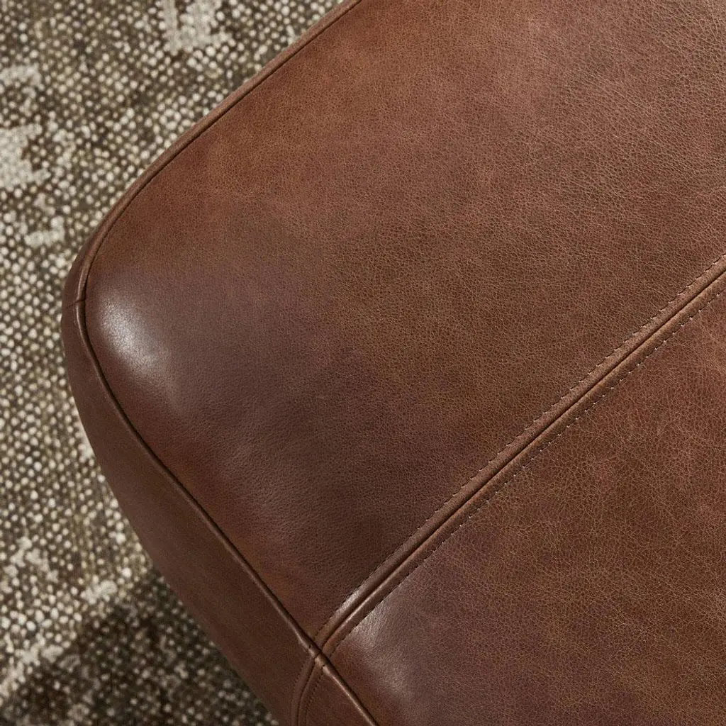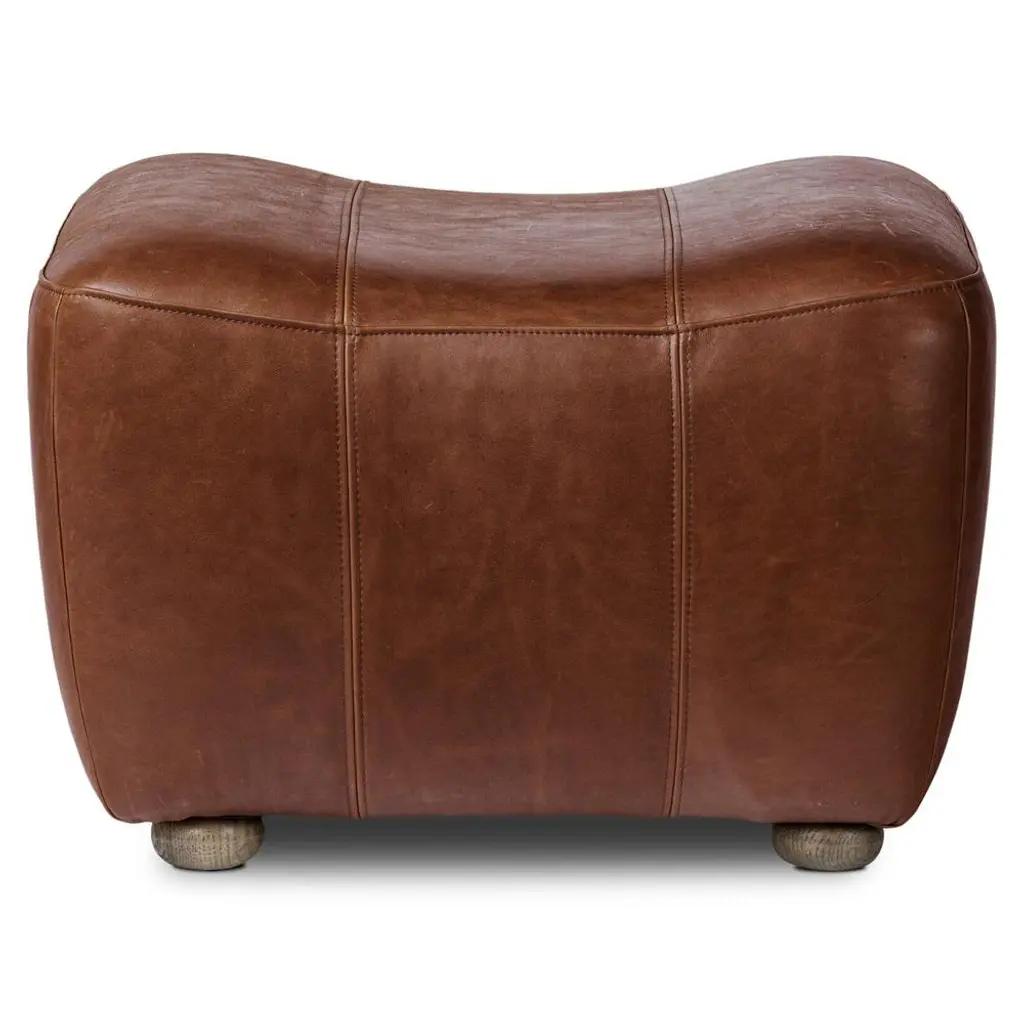 A design collaboration by Amber Lewis and Four Hands.With a subtle sweetheart shape and S-spring suspension, this leather ottoman is equal parts heritage style and ultimate comfort. Upholstered in a buttery soft leather rich in character. Style alone or pair with another for added impact.