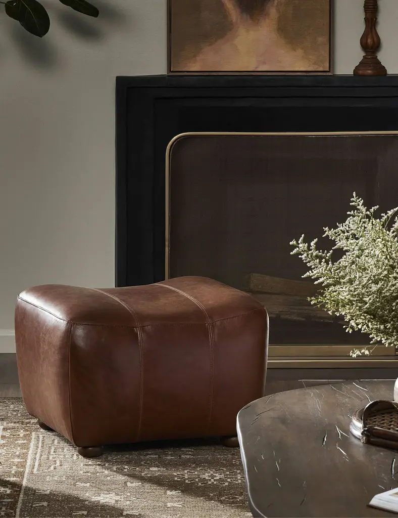 Four Hands brings their exceptional craftsmanship to a timeless collection rooted in Amber Lewis' perennial California style. With its subtle curvature, this ottoman makes a stylish floating accent for a den or living area.