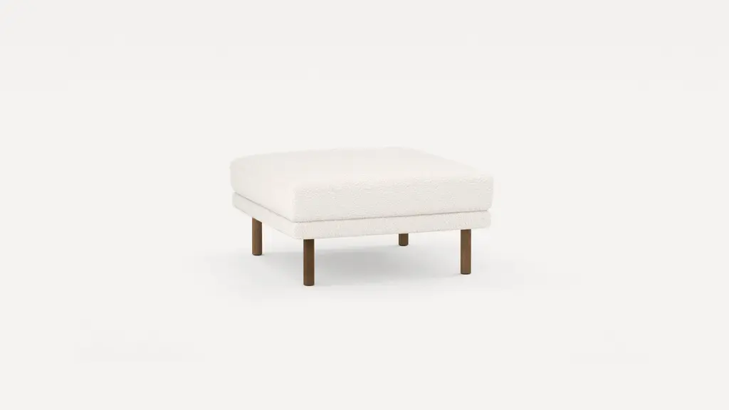 DESIGN Versatile, tailored, and easy to style, the Laguna features a crisp, clean design that complements any look. Cylindrical wooden legs give this collection its current appeal without feeling overly trendy. Handcrafted in the USA. FEATURES Solid Foundation: Our frames are constructed from precision-cut, FSC-certified engineered wood for unmatched strength and stability, featuring reinforced, interlocking joinery for added durability. Crafted for Coziness & Durability: Foam & fiber cushions offer our most supportive yet comfortable sit with a sleek, tailored look that requires minimal fluffing. These cushions feature high-quality, high-resiliency CertiPUR-US® foam core seats wrapped in premium fiber. CertiPur-US® foam is held to the highest standards of product safety and durability, so you can rest easy. Supportive Webbing Suspension: Designed to maximize comfort, our premium webbing system provides a resilient foundation. Customizable Upholstery: Choose from a vast selection of durable premium and performance fabrics and genuine Italian leather to personalize your Laguna Ottoman's look.