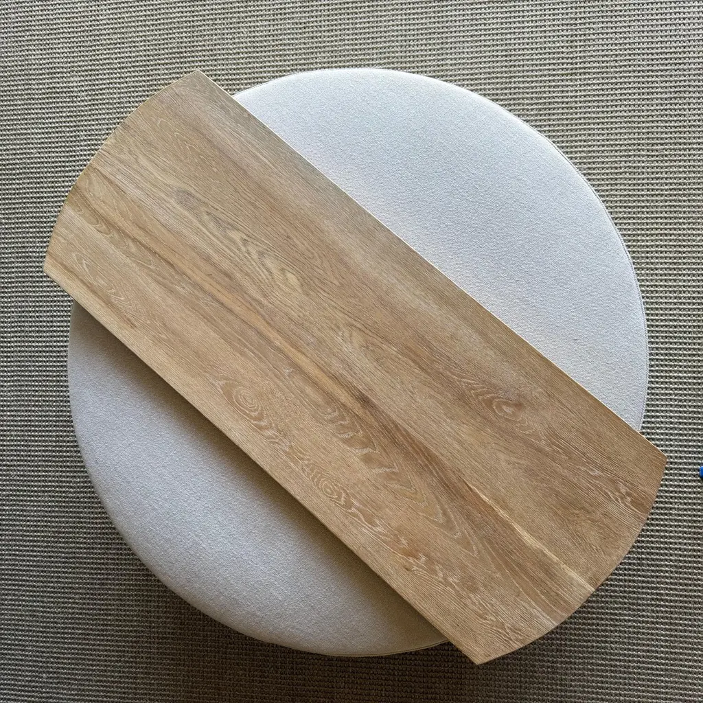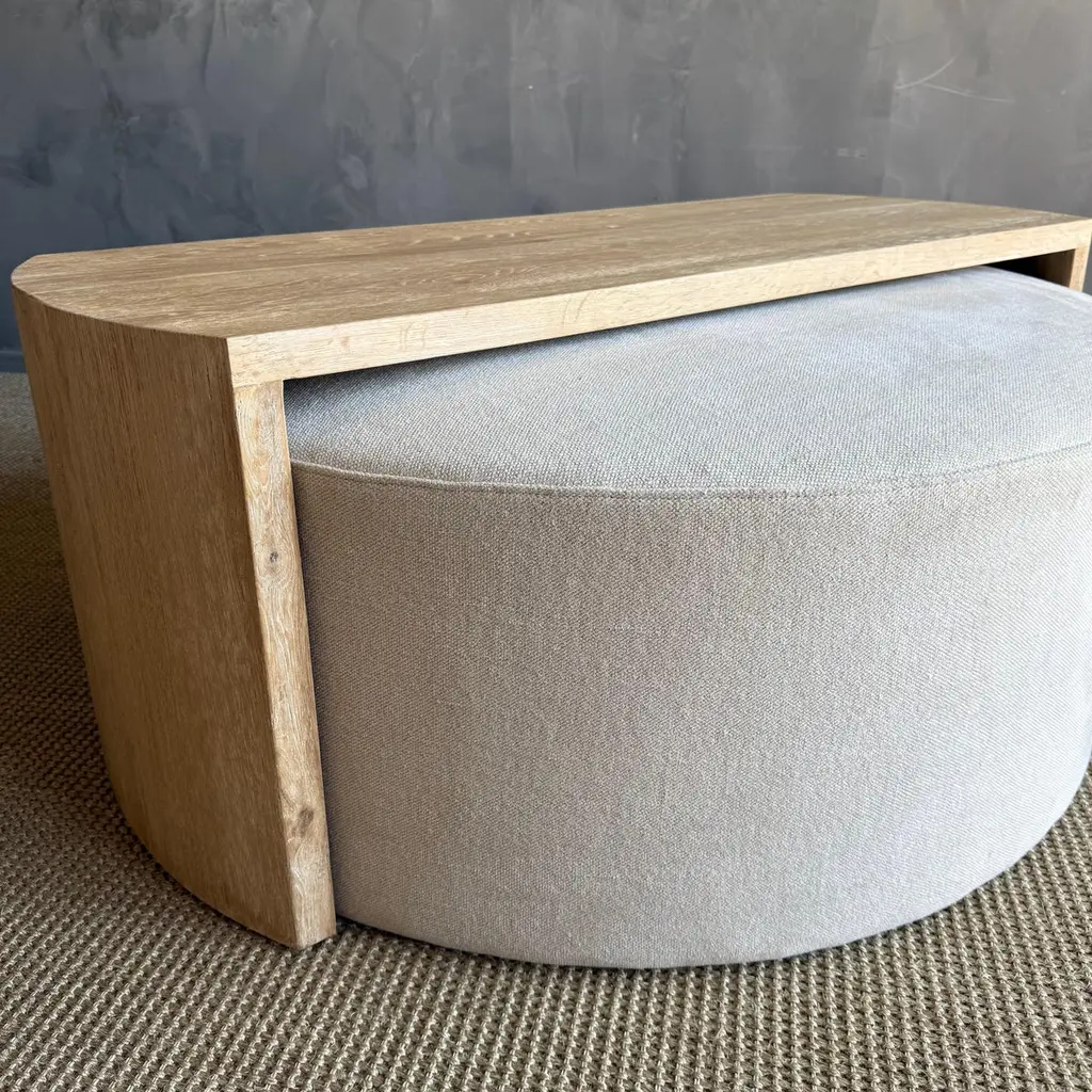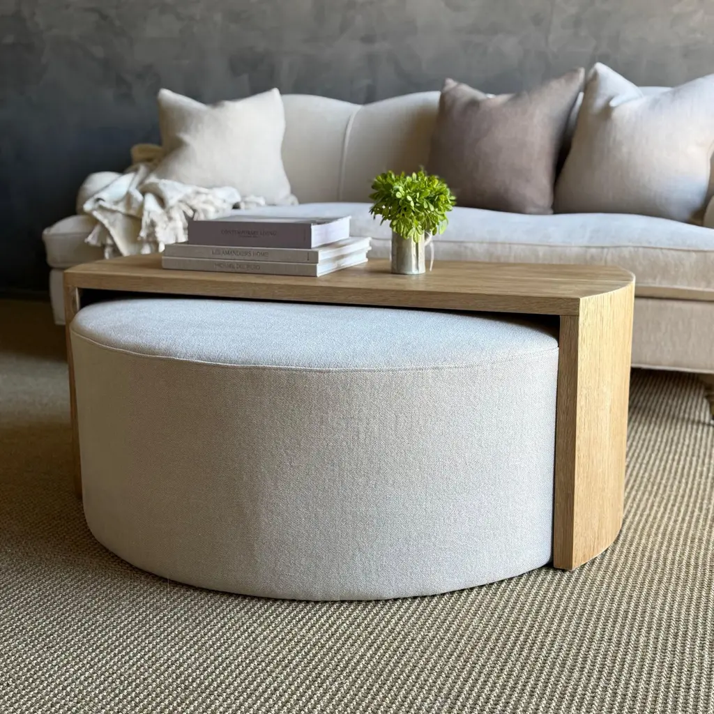 Laguna Round Ottoman With White Oak Waterfall Style Table