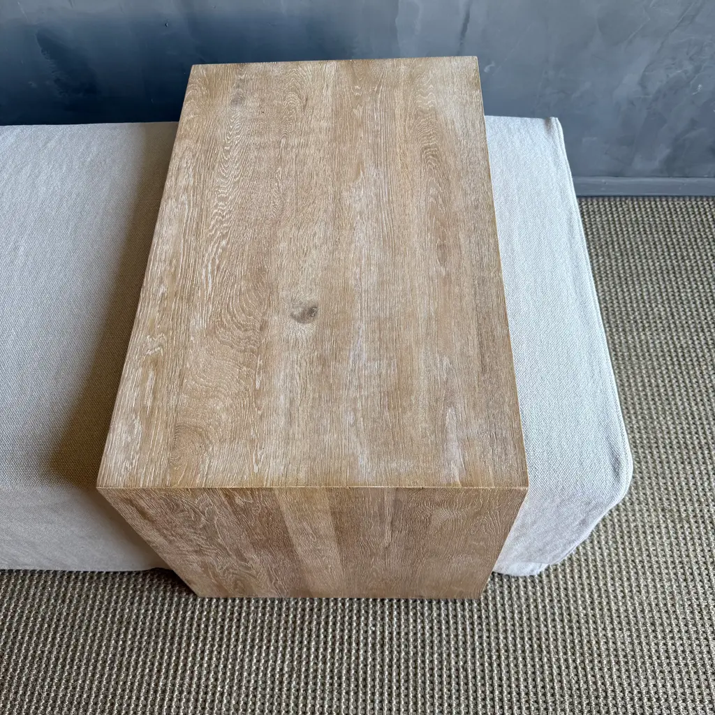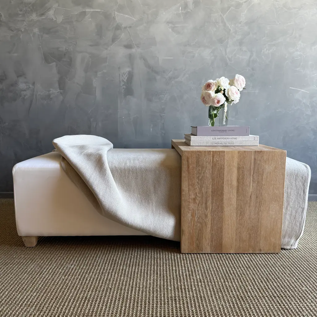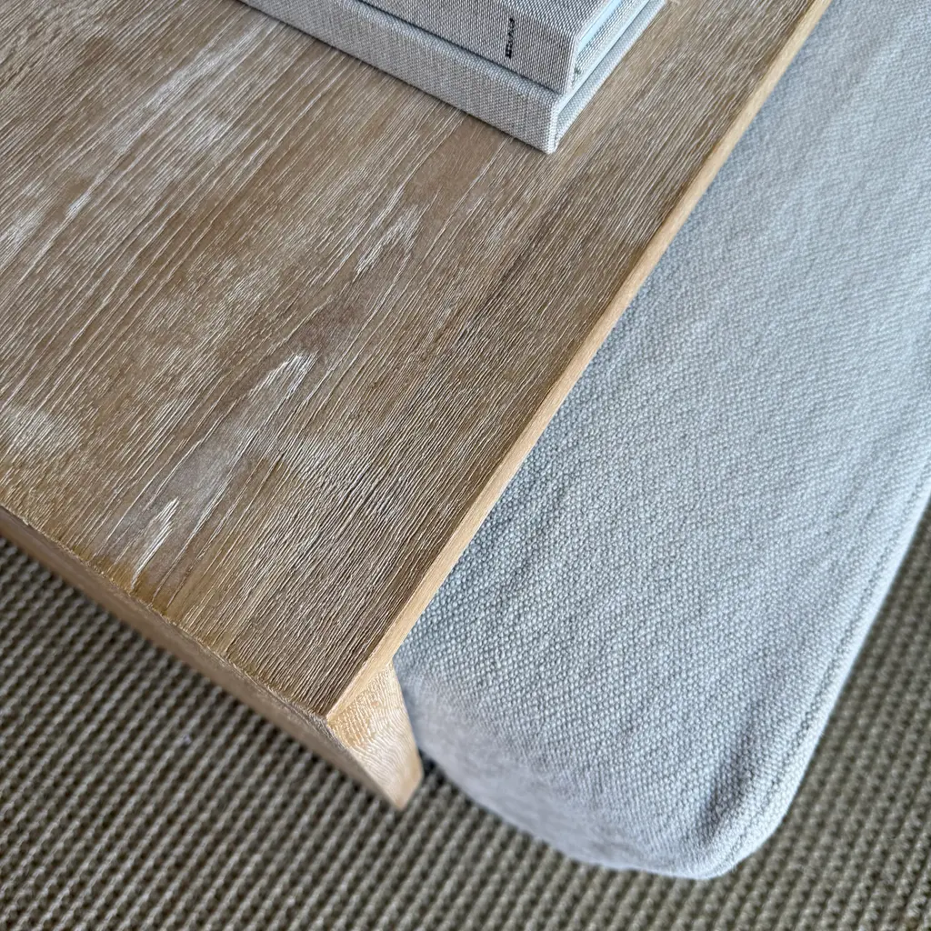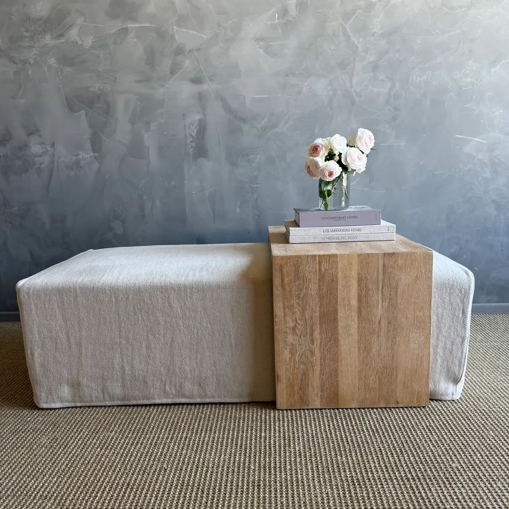 Laguna Slip Covered Ottoman With White Oak Waterfall Style Table