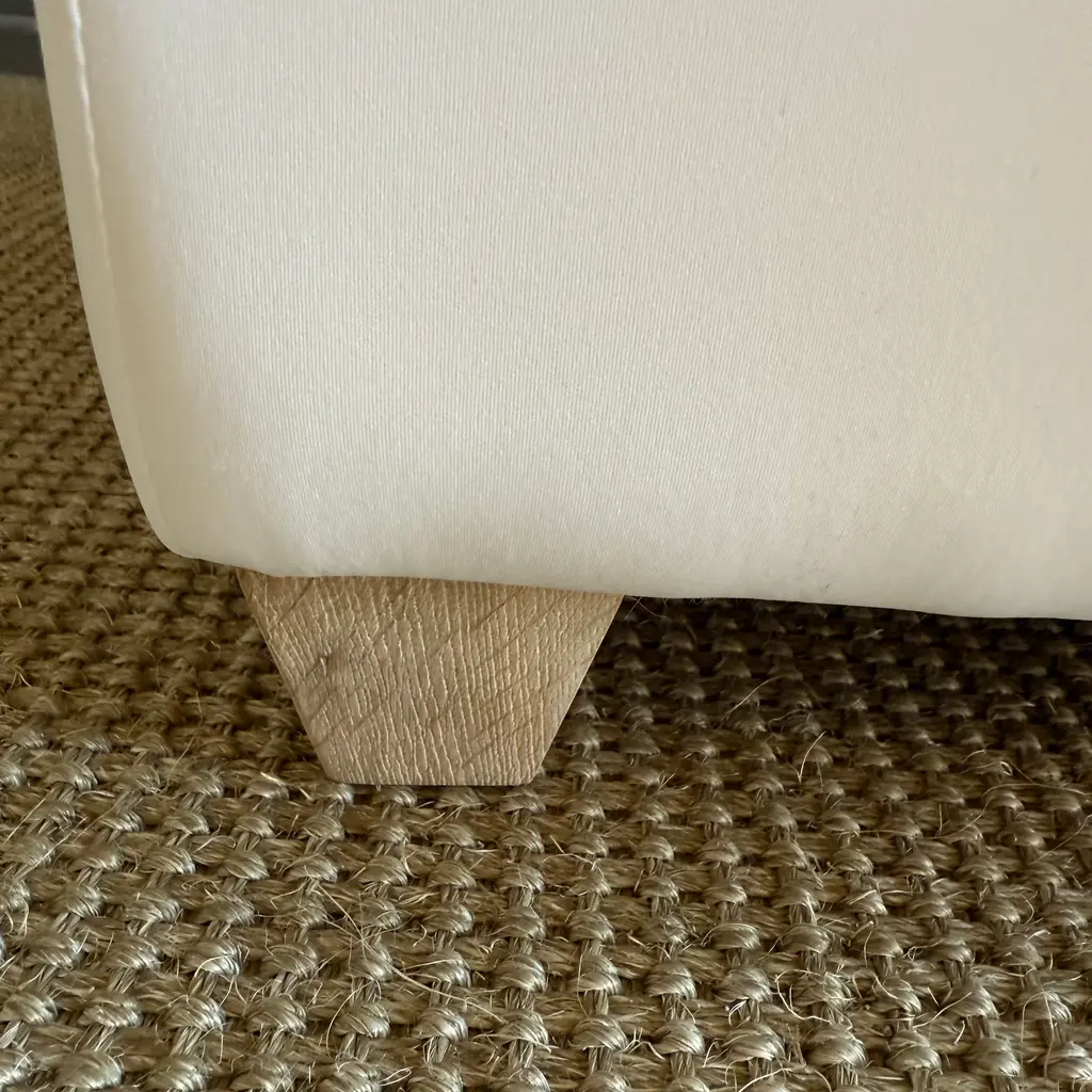 The Laguna Slip Covered Ottoman with White Oak Waterfall Style Table. 100% Natural Organic Hemp, a soft nubby texture in a natural undyed flax color, can be machine washed or dry cleaning recommended. The foam is medium to firm density, so when setting heavier items on the ottoman it holds shape. The waterfall table is constructed from solid white oak with wire brush finish. The wood has a natural texture, and imperfections, this is part of the charm of our rustic oak. Legs are in solid white oak. Our items are handmade, and each item will differ in grain, color tone, and wash. Wood may have variations is color and grain. Dimensions Ottoman: 54″ D x 26″ x 16.5″H Table: 29″w″ x 18.″ D x 18.25″H If item is backordered, please allow 10-16 weeks.