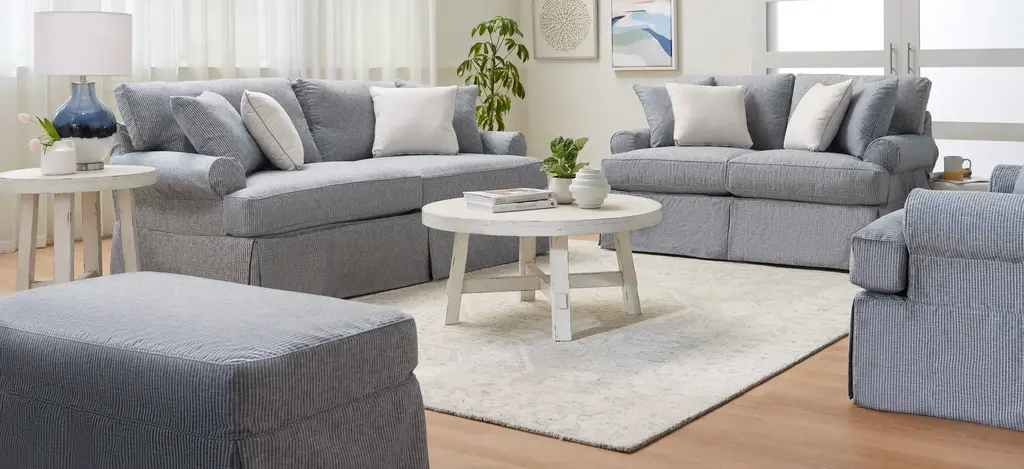 Create laid-back, weekend-on-the-water vibes and get convenient extra seating too, with the Lakeside Ottoman. It works as a great spot to put your feet up or set a snack tray, and an easy profile and no-fuss slipcover give it loads of casual charm.