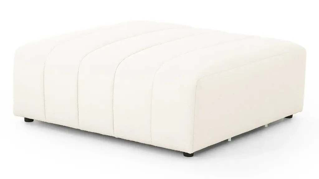 The sensible Langham Ottoman meets modern Italian styling. Wide vertical channeling offers a luxurious take on modular seating while the cloud fabric covering awes in any space.