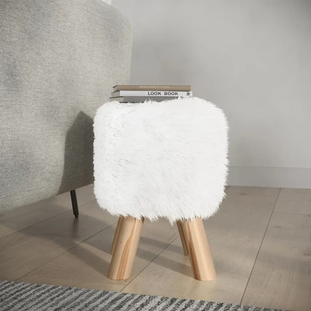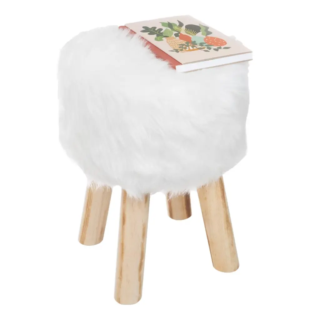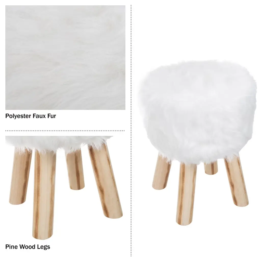 Lavish Home Round Faux Fur Ottoman, Footrest, Or Accent Stool (White)