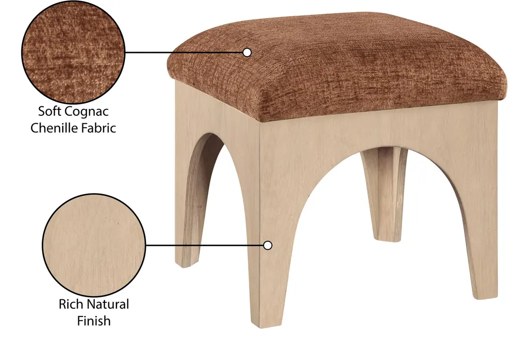 The Lawson Cognac Chenille Fabric Ottoman is a versatile addition to any living room. Its square shape and cognac chenille fabric offer a plush and comfortable seating option. This ottoman is perfect for adding a touch of warmth and style to your space.
