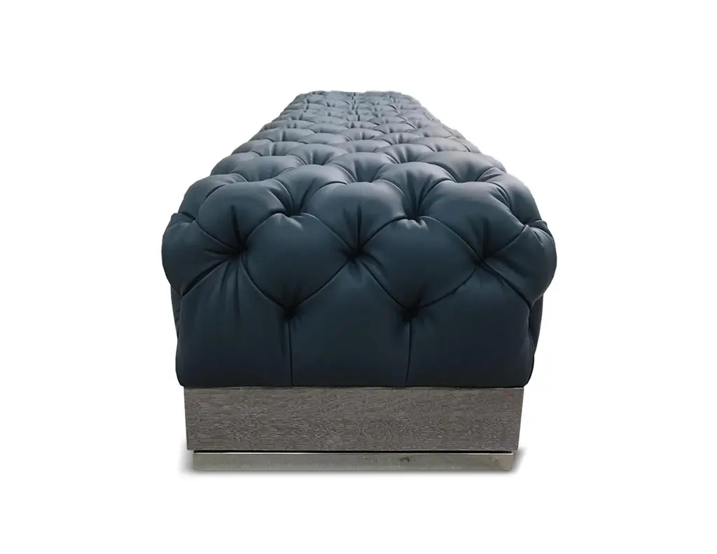 NUBE Ottoman: The ottoman is inspired by a cloud and gives a contemporary twist to the classic Capitonné. Our artisans’ mastery of this special technique shows in the skillfully tufted seating grounding on a European oak frame with noble metal feet. A unique combination of materials and forms blend into this re-invented masterpiece of craftsmanship as a comfortable yet representative ottoman.As shown Upholstery: Leather DF 2242 Wood: Beach Grey Metal: Inox LucidoHand Crafted in Italy.