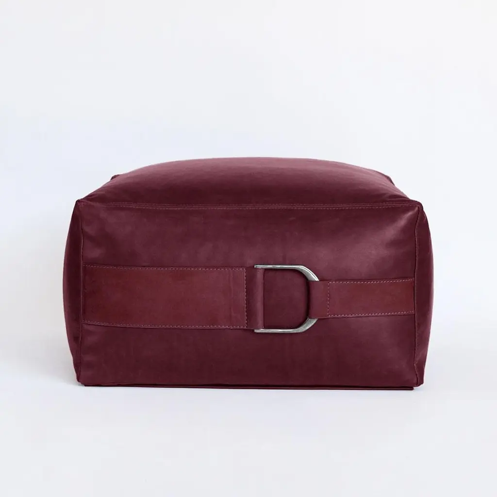 Leather Ottoman In Solid Berry, Small, Talabartero Collection