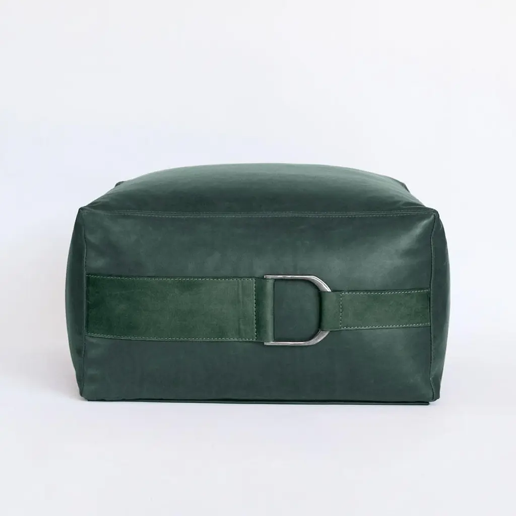 Leather Ottoman In Solid Emerald Green, Large, Talabartero Collection
