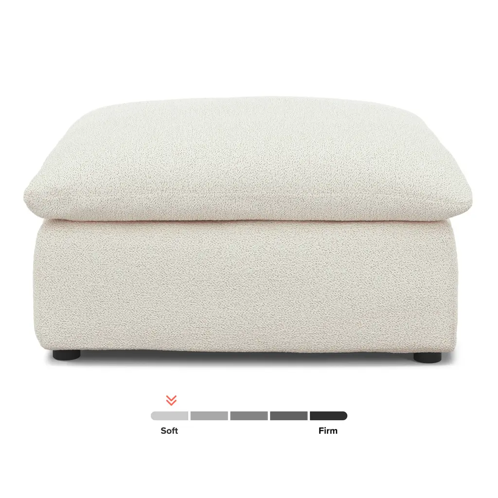 Cloud kingdom, population: you. The Leigh ottoman is our companion piece to our comfiest sofa ever. Upholstered with our ever-so-soft bouclé fabric, the Leigh ottoman is here to help you rest easy.