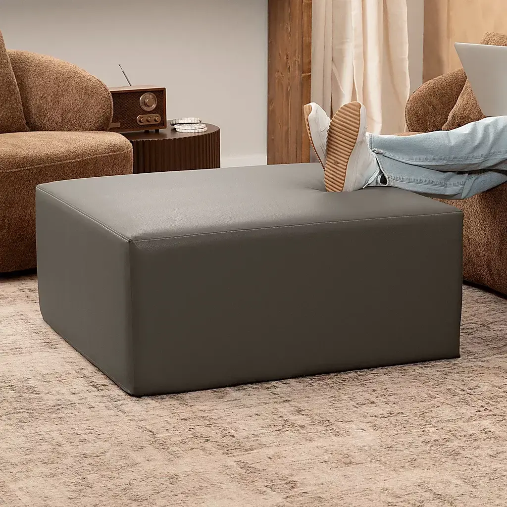 Meet the Lesusa I Ottoman versatile chic soft furniture for your living spaces. This oversized 36-inch square ottoman is perfect for kicking up your feet, grabbing an extra seat, or even using it as a stylish coffee table. Lightweight and effortless to rearrange, yet firm and stable, the Lesusa I transforms your living room seating options. Built to last with solid furniture-grade foam, it comes in your choice of either a trendy machine-washable boucle cover or a sleek pebble faux leather cover thats a breeze to spot clean. Handcrafted from sturdy, solid, furniture-grade foam, its the ideal platform for drinks, notebooks, and games, with no hard edges to bump your knees on - perfect for families and kid safe. Whether you use it as a footrest, additional seating, or a stylish coffee table centerpiece, the chic design seamlessly integrates into any living space. Accent your decor with an array of contemporary color selections.