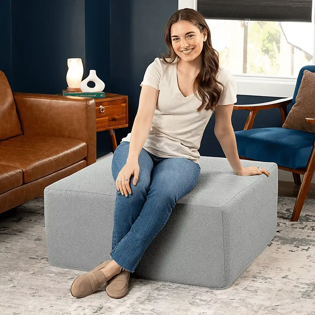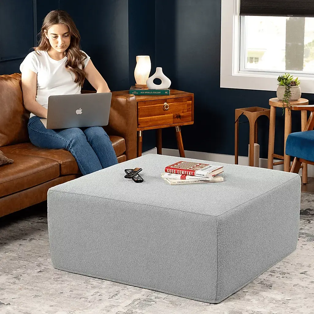 Meet the Lesusa II Ottoman versatile chic soft furniture for your living spaces. This oversized 36-inch square ottoman is perfect for kicking up your feet, grabbing an extra seat, or even using it as a stylish coffee table. Lightweight and effortless to rearrange, yet firm and stable, the Lesusa II transforms your living room seating options. Built to last with solid furniture-grade foam, it comes in your choice of either a trendy machine-washable boucle cover or a sleek pebble faux leather cover thats a breeze to spot clean. Handcrafted from sturdy, solid, furniture-grade foam, its the ideal platform for drinks, notebooks, and games, with no hard edges to bump your knees on - perfect for families and kid safe. Whether you use it as a footrest, additional seating, or a stylish coffee table centerpiece, the chic design seamlessly integrates into any living space. Accent your decor with an array of contemporary color selections.