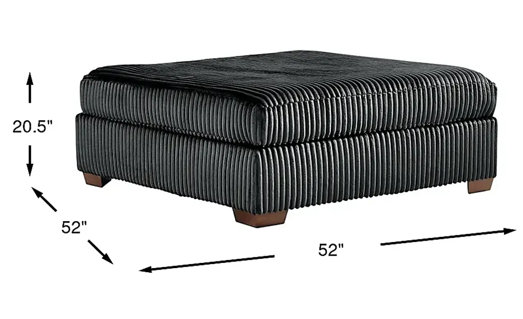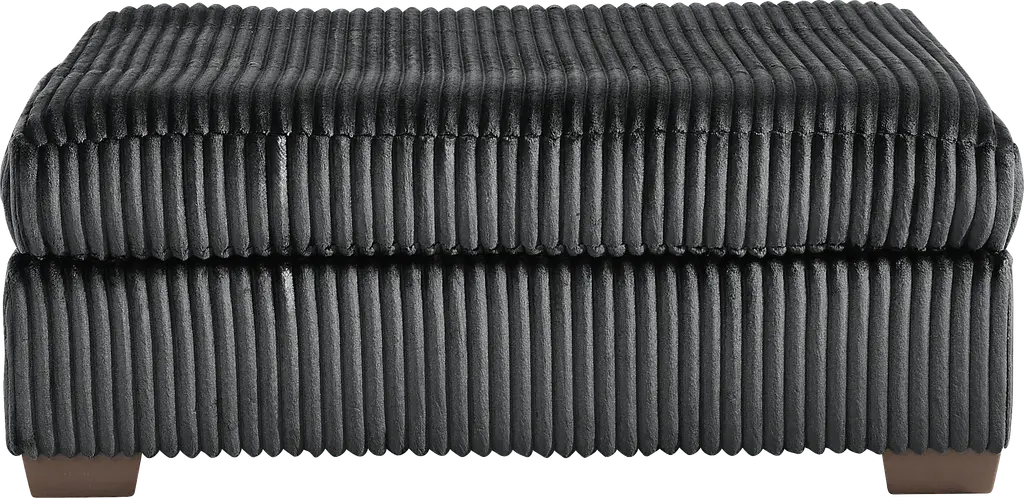 Runway inspiration meets unapologetic indulgence in Lexford Park, where the poise of high fashion pairs effortlessly with the ease of everyday relaxation. Clad in ribbed black corduroy, the cocktail ottoman makes a striking centerpiece, offering a plush surface that's as inviting to lounge on as it is to style. Whether serving as a chic footrest, an extra seat or the perfect place to set a tray, its generous scale and sumptuous texture redefine versatility with fashion-ready allure. Upholstery: 100% Polyester
