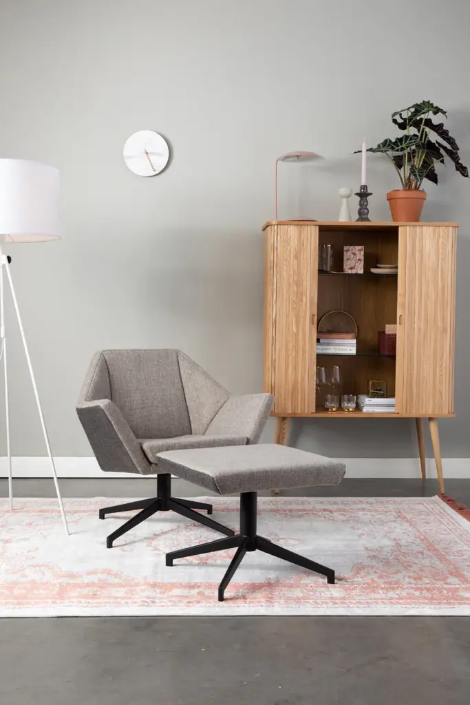 The perfect companion to the Zuiver Uncle Jesse Lounge Chair, equally stunning in looks and just as comfortable. Upholstered in durable fabric and set upon black powdered metal spider legs for ultimate support.