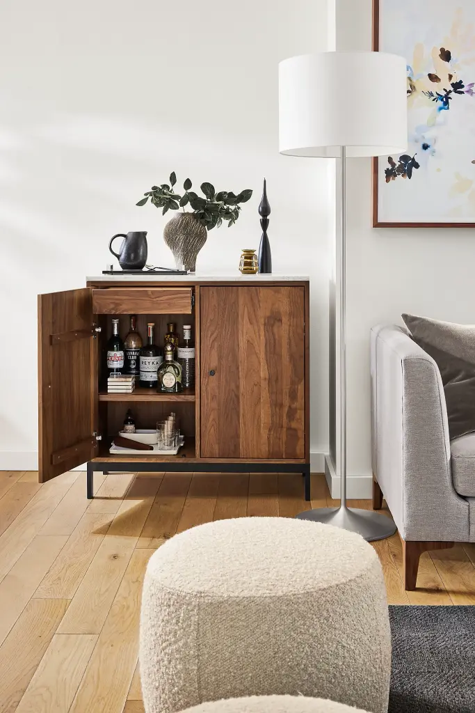 A versatile accent piece, our Lind ottoman can work as a cocktail table, extra seating or a comfy spot to rest your feet. Lind stays put with stationary legs, or rolls around your space with ease when you attach the included carpet casters.