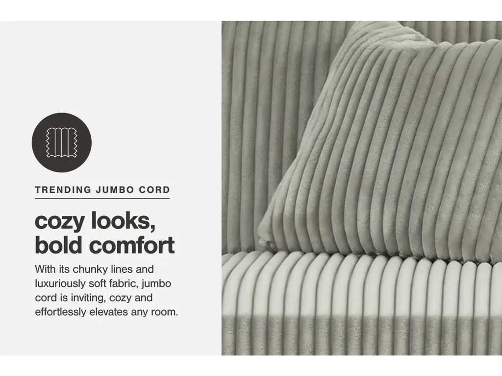 Plush and posh. Showcase your eye for on-trend texture with the statement-ma cord upholstery of the Lindyn oversized accent ottoman. Its stunningly soft fabric entices in a warm neutral hue, complementing contemporary color palettes. Let your feet sink into the spacious cushion and plan to stay a while—this cozy living room ottoman highlights your high-end approach to comfort and style.