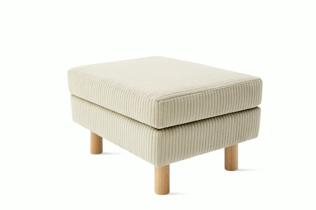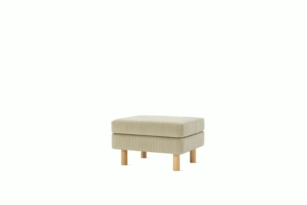 Architect Neil Logan designed the Lispenard Collection for an art collector who wanted a contemporary sofa soft enough to sink into. The result proved so versatile that Herman Miller put it into production. Topped with feather-filled cushions that provide just the right amount of give, the Lispenard Ottoman (2018) has round, hardwood legs available in an oak or walnut finish. The upholstered sofa ottoman is available in a choice of two heights, and comes in dozens of fabric and leather options.