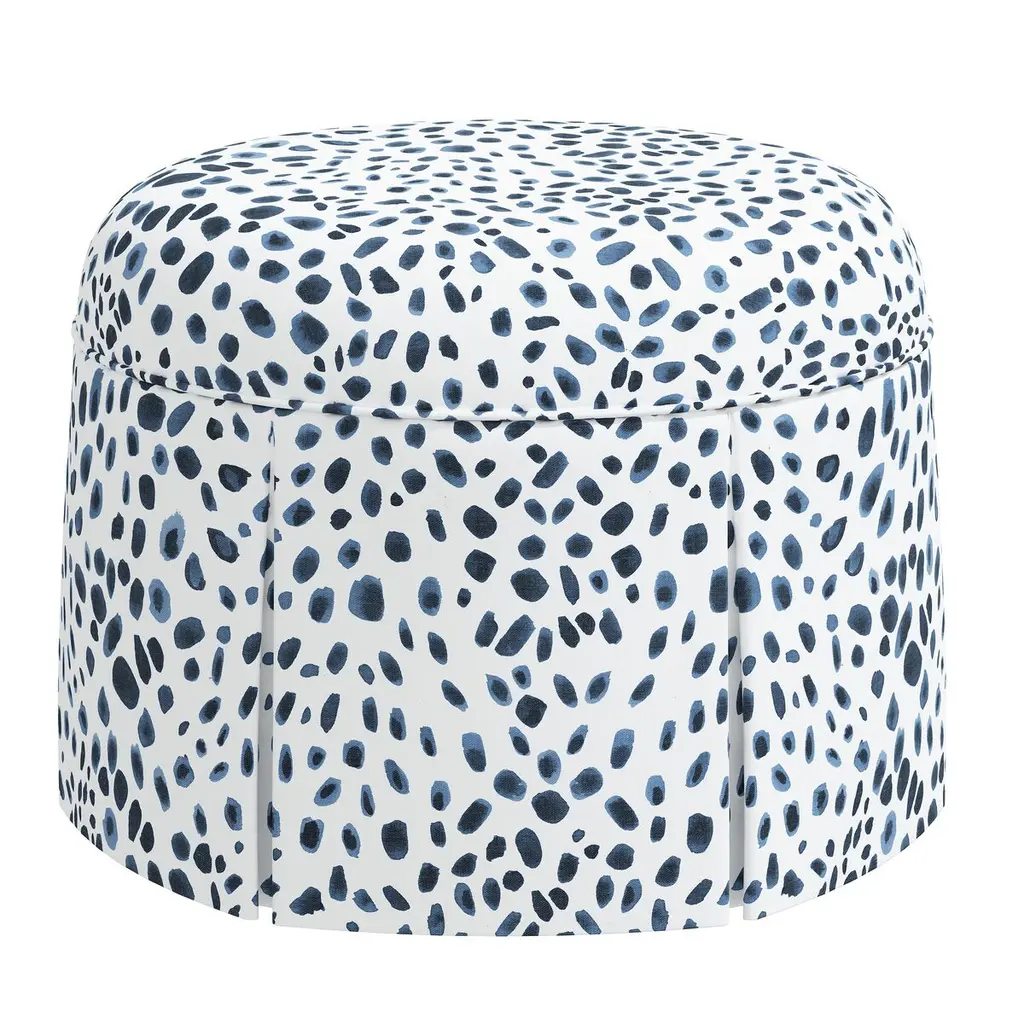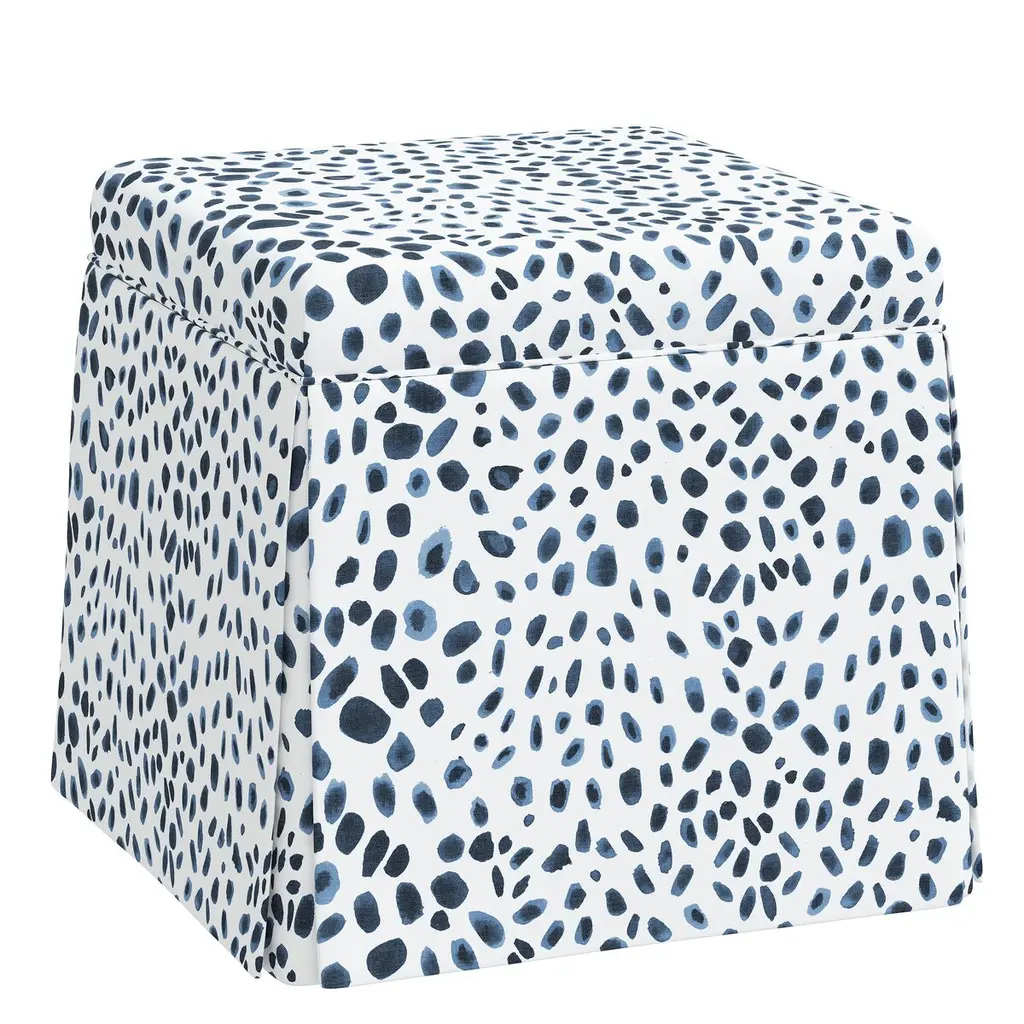 Liza Skirted Ottoman, Cheetah Navy
