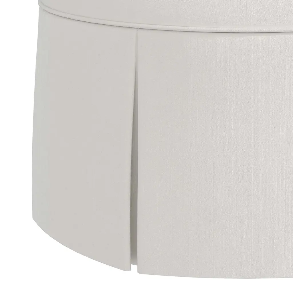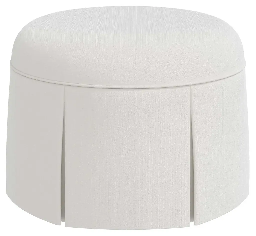 Made in the USA and upholstered in plush velvet, this round skirted ottoman exemplifies classic elegance. It's impressively versatile too: Use it as a footrest, extra seating, or when topped with a tray, an occasional table.