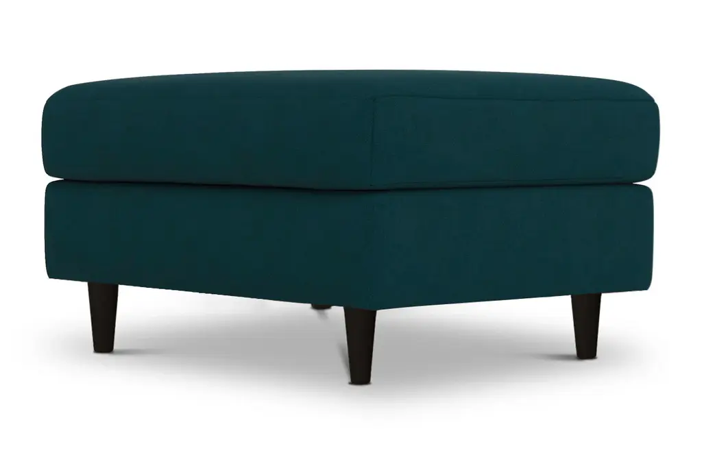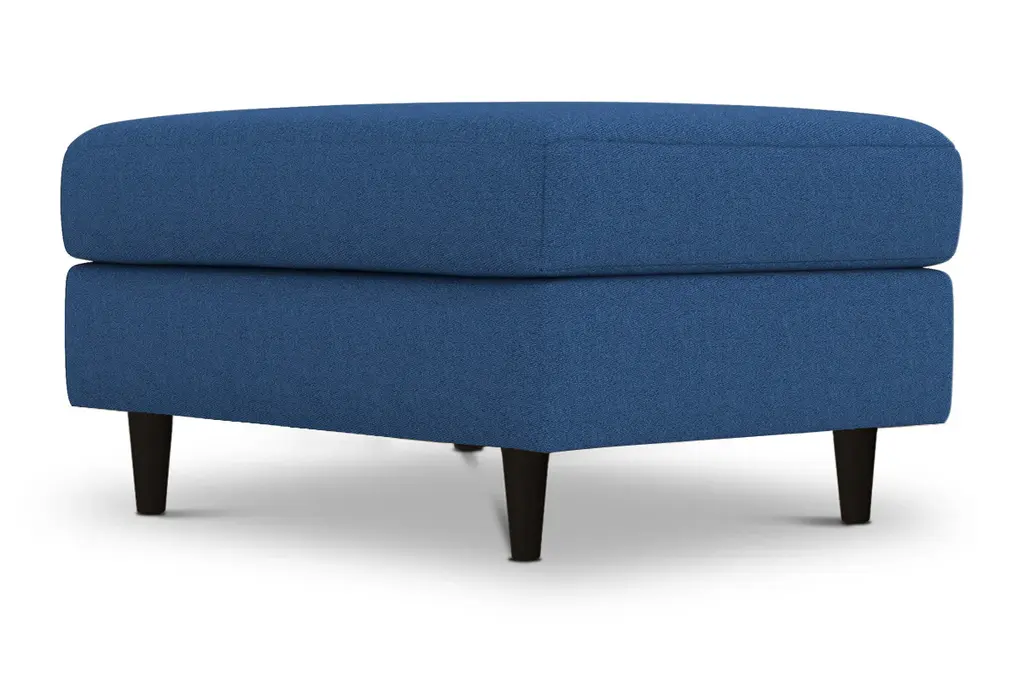While the Logan Ottoman is designed to perfectly match our Logan Collection, pair it with your existing seating for a more eclectic vibe. Logan can be upholstered in a wide variety of soft, textured poly-blend fabrics, in a handful of sizes and with your choice of three wooden leg finishes. Made in the USA!