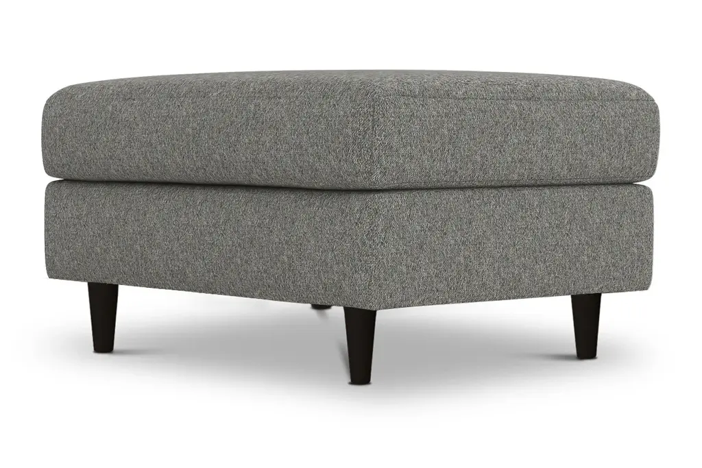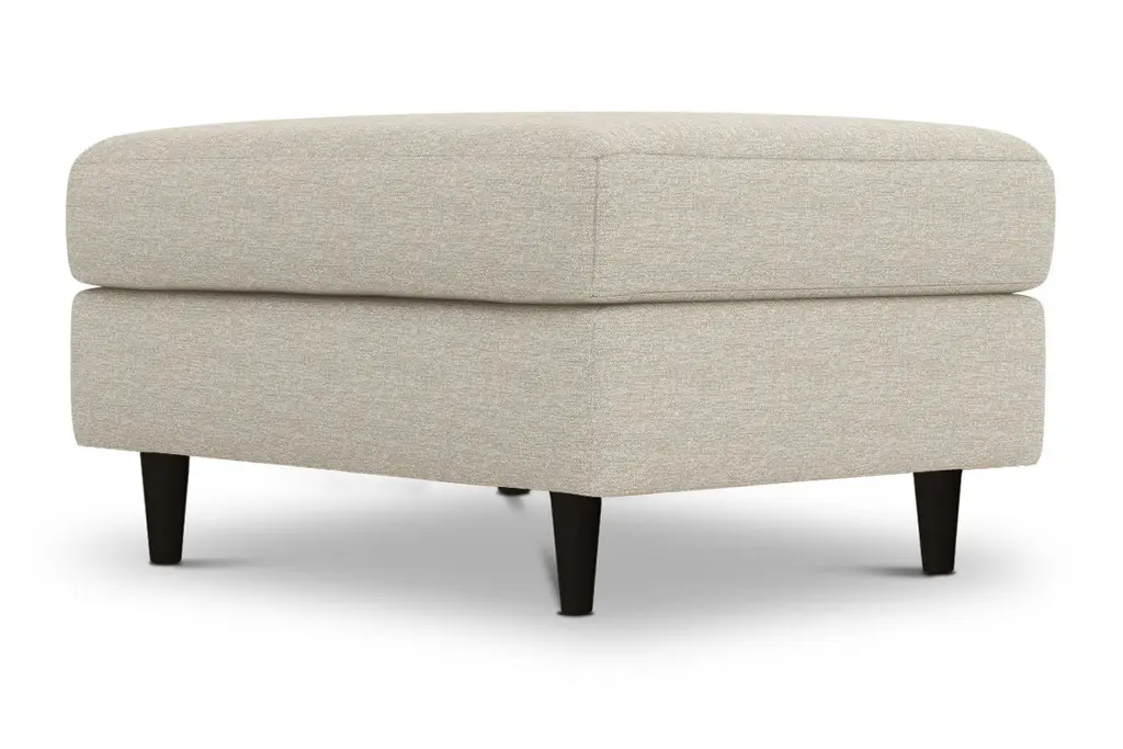 While the Logan Ottoman is designed to perfectly match our Logan Collection, pair it with your existing seating for a more eclectic vibe. Logan can be upholstered in a wide variety of soft, textured poly-blend fabrics, in a handful of sizes and with your choice of three wooden leg finishes. Made in the USA!