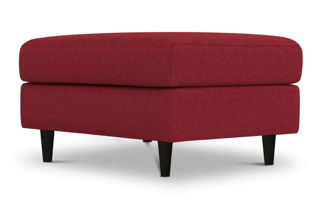 While the Logan Ottoman is designed to perfectly match our Logan Collection, pair it with your existing seating for a more eclectic vibe. Logan can be upholstered in a wide variety of soft, textured poly-blend fabrics, in a handful of sizes and with your choice of three wooden leg finishes. Made in the USA!