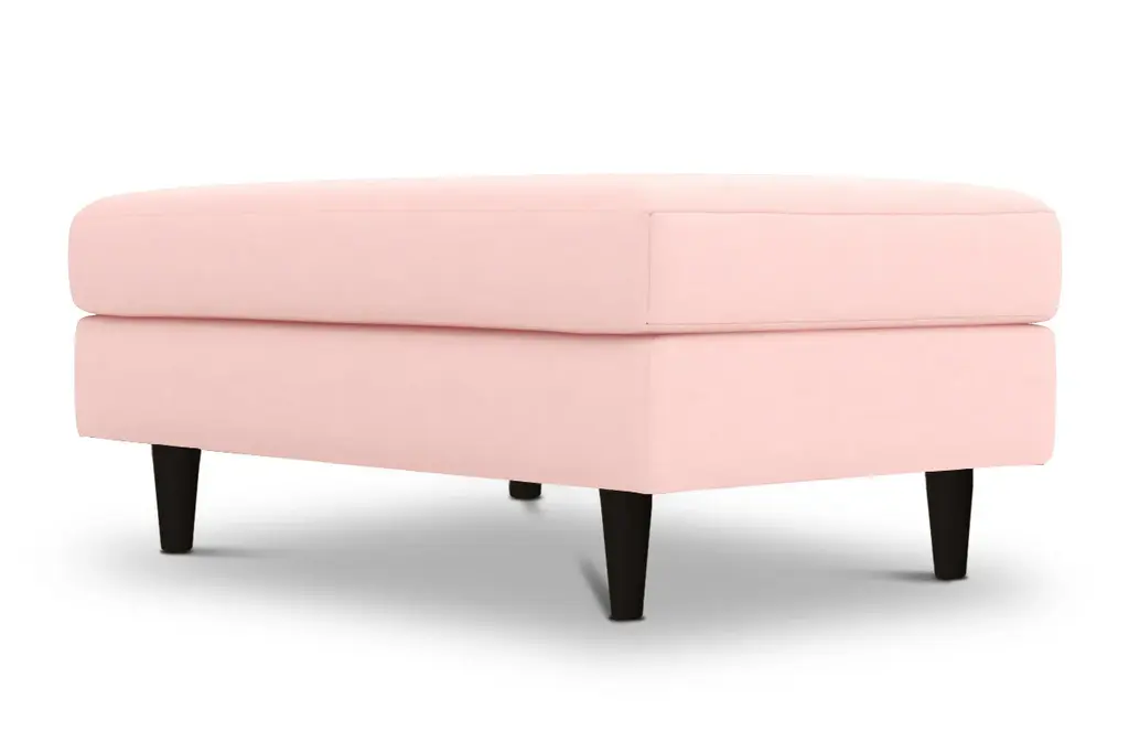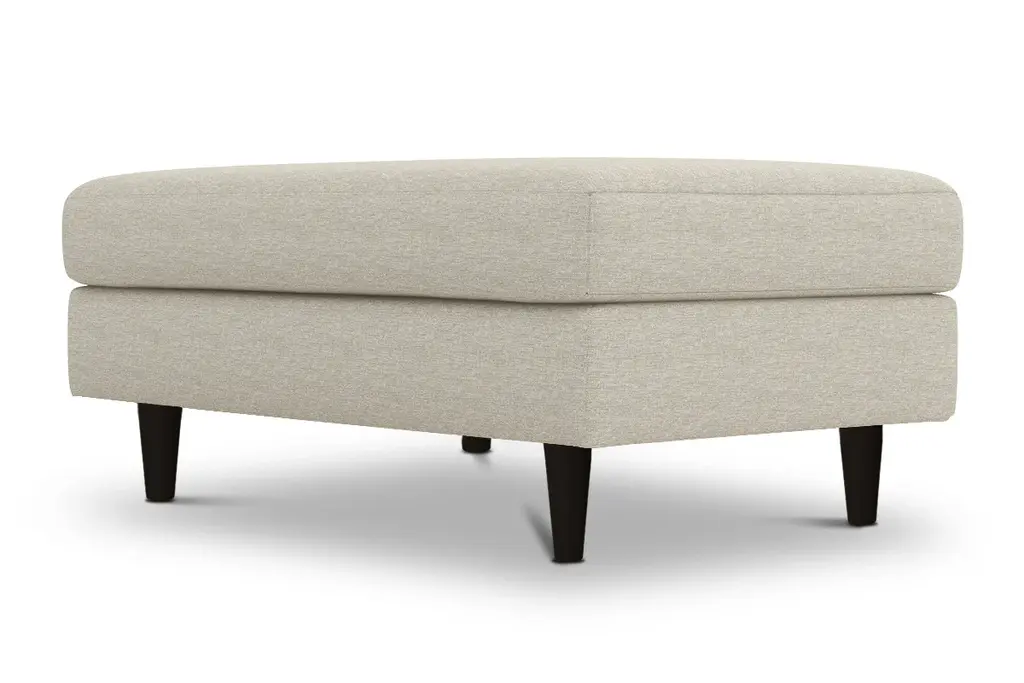 While the Logan Ottoman is designed to perfectly match our Logan Collection, pair it with your existing seating for a more eclectic vibe. Logan can be upholstered in a wide variety of soft, textured poly-blend fabrics, in a handful of sizes and with your choice of three wooden leg finishes. Made in the USA!