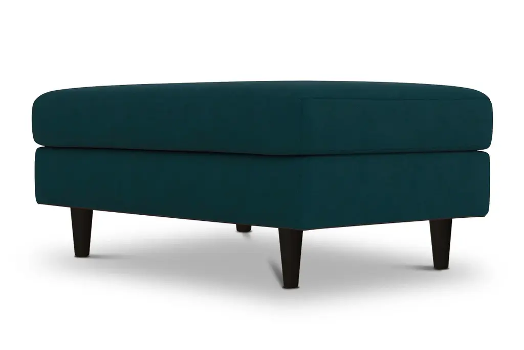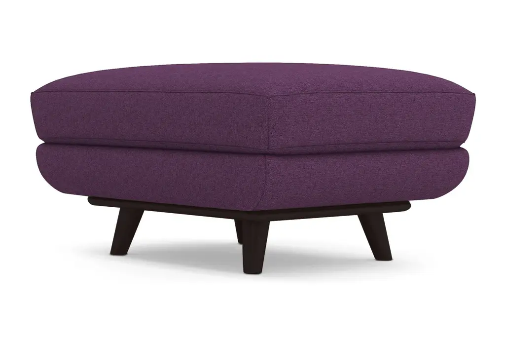While the Logan Ottoman is designed to perfectly match our Logan Collection, pair it with your existing seating for a more eclectic vibe. Logan can be upholstered in a wide variety of soft, textured poly-blend fabrics, in a handful of sizes and with your choice of three wooden leg finishes. Made in the USA!