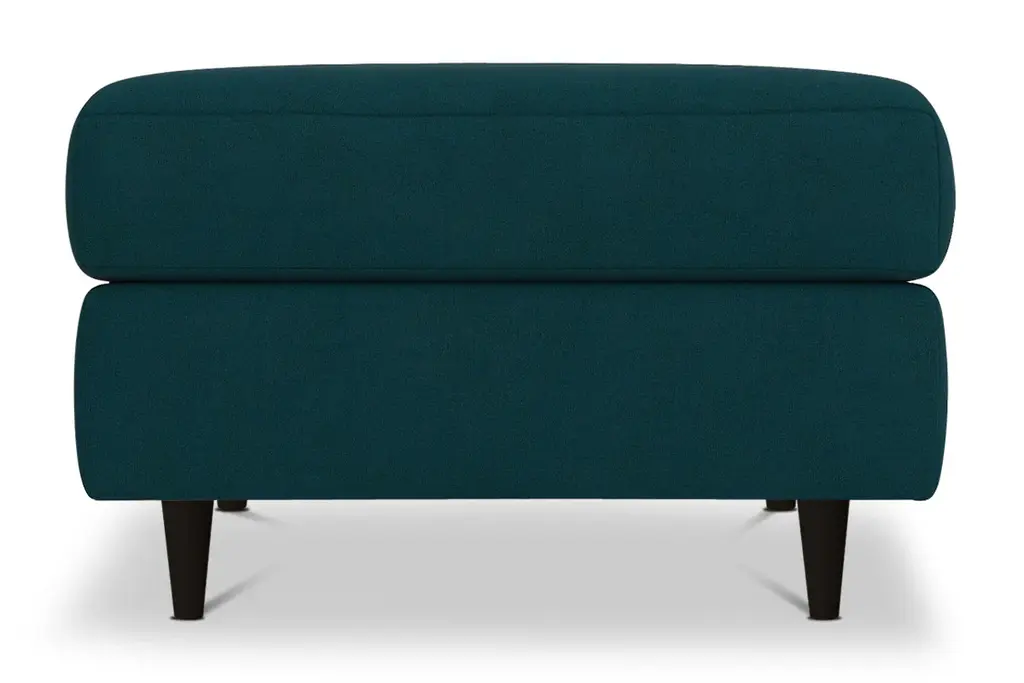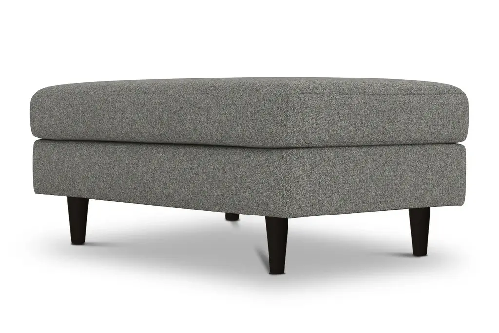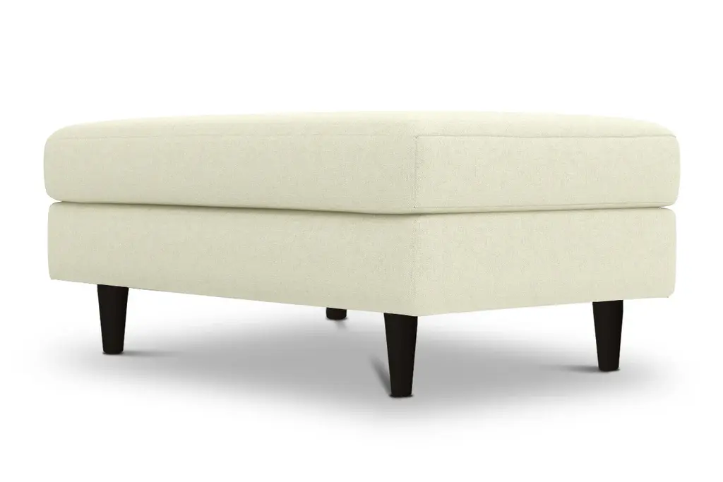 While the Logan Ottoman is designed to perfectly match our Logan Collection, pair it with your existing seating for a more eclectic vibe. Logan can be upholstered in a wide variety of soft, textured poly-blend fabrics, in a handful of sizes and with your choice of three wooden leg finishes. Made in the USA!