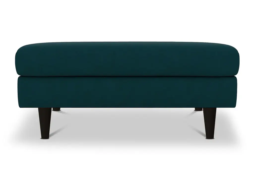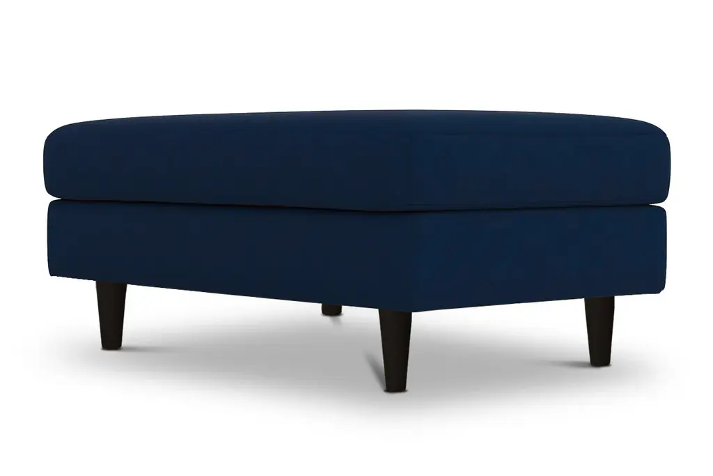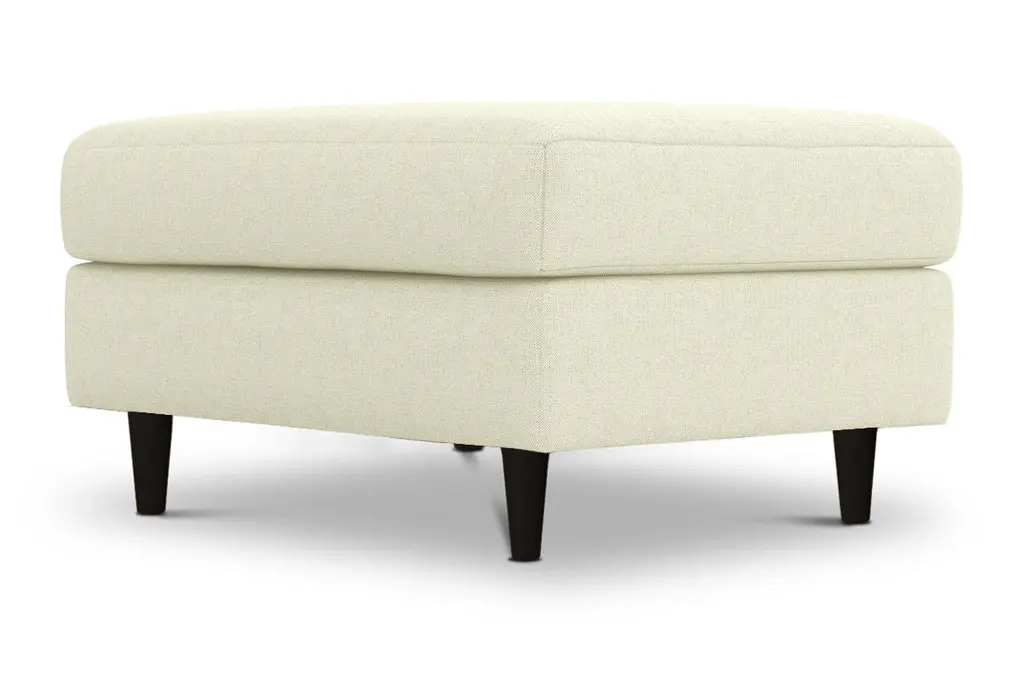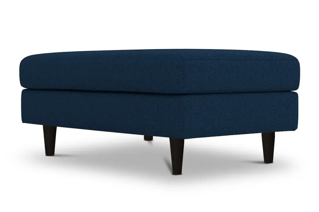 While the Logan Ottoman is designed to perfectly match our Logan Collection, pair it with your existing seating for a more eclectic vibe. Logan can be upholstered in a wide variety of soft, textured poly-blend fabrics, in a handful of sizes and with your choice of three wooden leg finishes. Made in the USA!