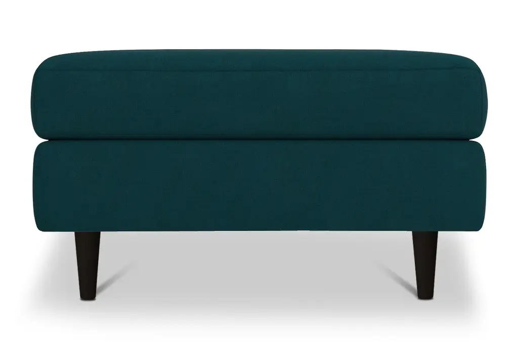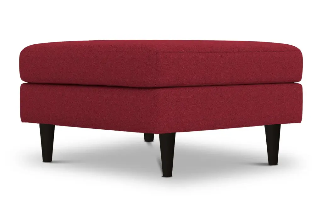 While the Logan Ottoman is designed to perfectly match our Logan Collection, pair it with your existing seating for a more eclectic vibe. Logan can be upholstered in a wide variety of soft, textured poly-blend fabrics, in a handful of sizes and with your choice of three wooden leg finishes. Made in the USA!