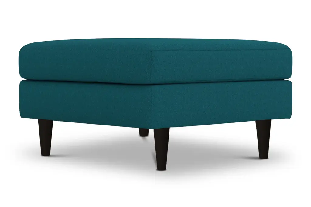 While the Logan Ottoman is designed to perfectly match our Logan Collection, pair it with your existing seating for a more eclectic vibe. Logan can be upholstered in a wide variety of soft, textured poly-blend fabrics, in a handful of sizes and with your choice of three wooden leg finishes. Made in the USA!