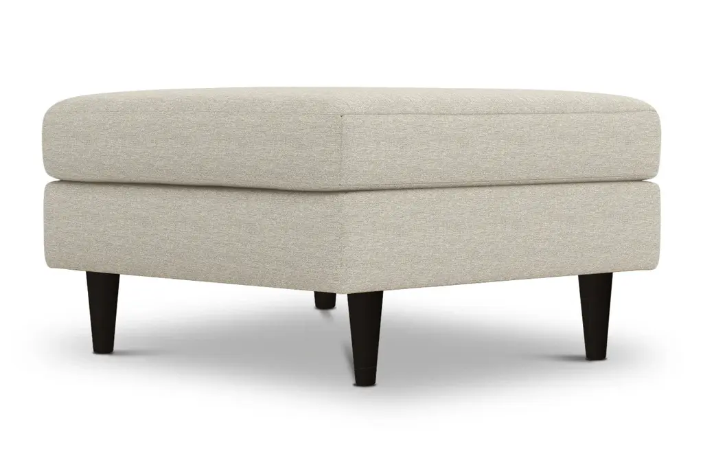 While the Logan Ottoman is designed to perfectly match our Logan Collection, pair it with your existing seating for a more eclectic vibe. Logan can be upholstered in a wide variety of soft, textured poly-blend fabrics, in a handful of sizes and with your choice of three wooden leg finishes. Made in the USA!