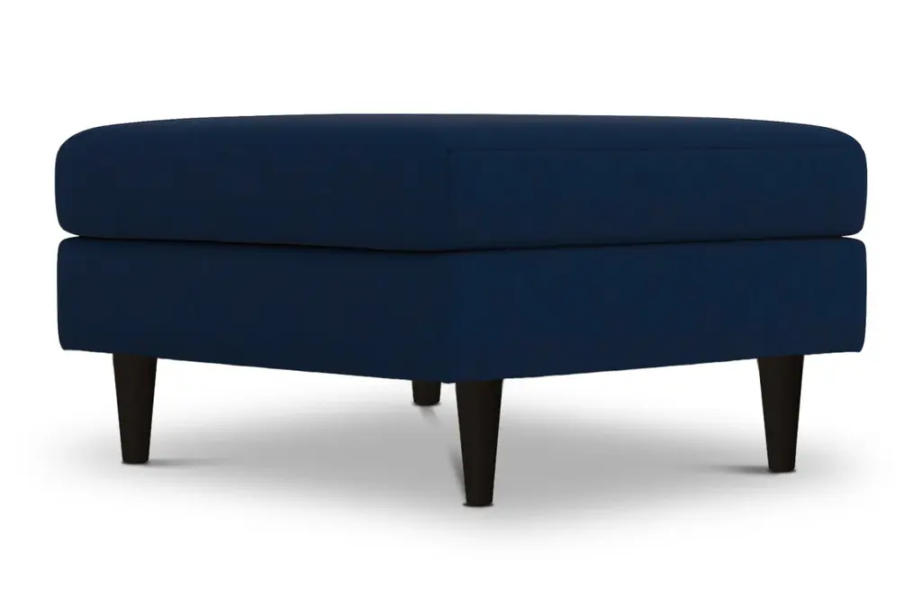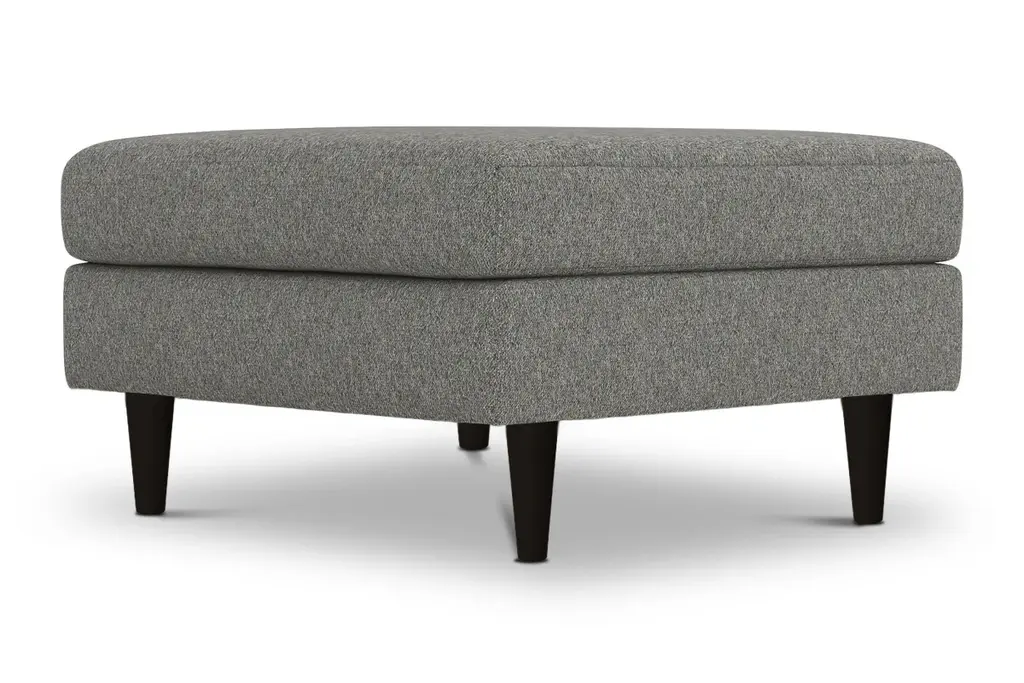 While the Logan Ottoman is designed to perfectly match our Logan Collection, pair it with your existing seating for a more eclectic vibe. Logan can be upholstered in a wide variety of soft, textured poly-blend fabrics, in a handful of sizes and with your choice of three wooden leg finishes. Made in the USA!