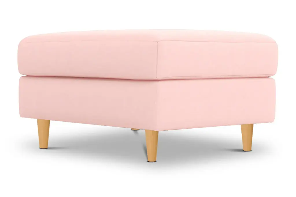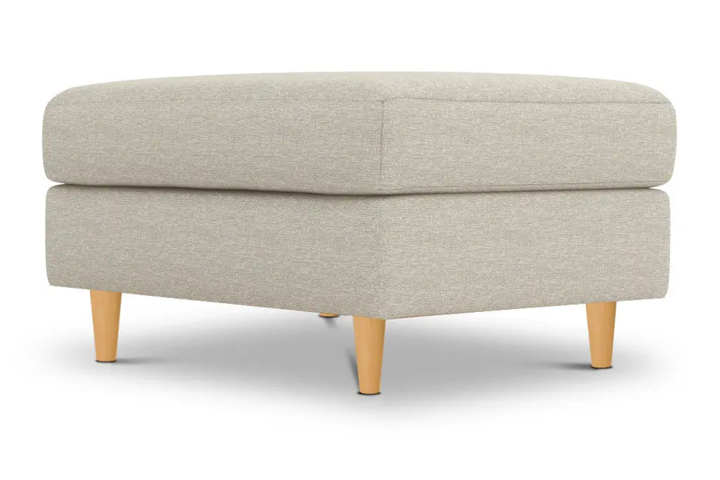 While the Logan Ottoman is designed to perfectly match our Logan Collection, pair it with your existing seating for a more eclectic vibe. Logan can be upholstered in a wide variety of soft, textured poly-blend fabrics, in a handful of sizes and with your choice of three wooden leg finishes. Made in the USA!